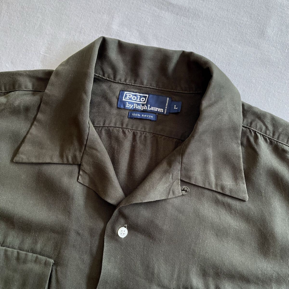 90'S Polo by Ralph Lauren 無地 レーヨン ループカラー 長袖 ボックスシャツ レアカラー! ポニー無し!