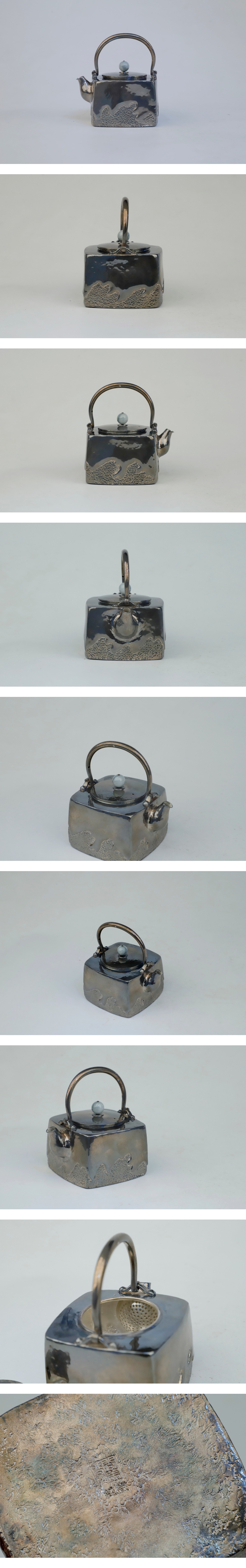 純銀保証 尚美堂造 四面取 玉摘 湯沸 銀瓶 純銀製 時代物 美術品 煎茶道具