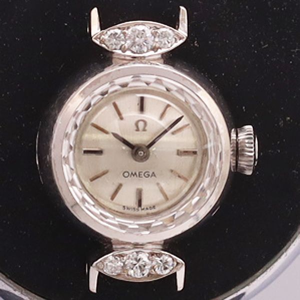 デッドストック級 稼働 良品 オメガ 手巻き 石付 ラウンド シルバー文字盤 トップのみ レディース腕時計 1084ABC0561300 YSD