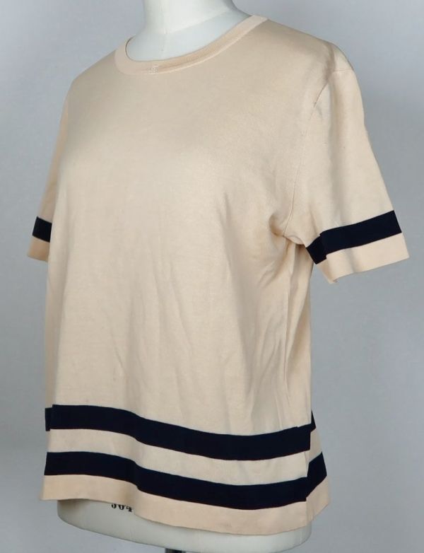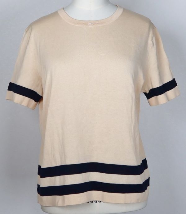 VINTAGE CHANEL coco short sleeve knit size 46 シャネル ココマーク 半袖 ニット <色> 画像を参考にお願いします <素材> 100%cotton <サイズ> 46 <寸法> 肩幅42.5身幅49着丈56.5袖丈20.5(単位:㎝) <商品状態> VINTAGE品、若干の着用感と細かい薄汚れは少々ございますが綺麗なお品です。 <備考> 国内購入品 ■支払方法 YAHOOかんたん決済で落札価格+送料をお支払いください。 ■発送詳細 佐川急便、送料全国一律900円