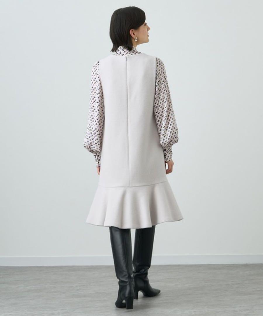 裾にラッフルディテールを入れた、ジャンパースカートは、膨らみのあるジャージー素材に全面芯を貼る事で程よいハリ感を出し、ミニマムな印象に仕上げています。
