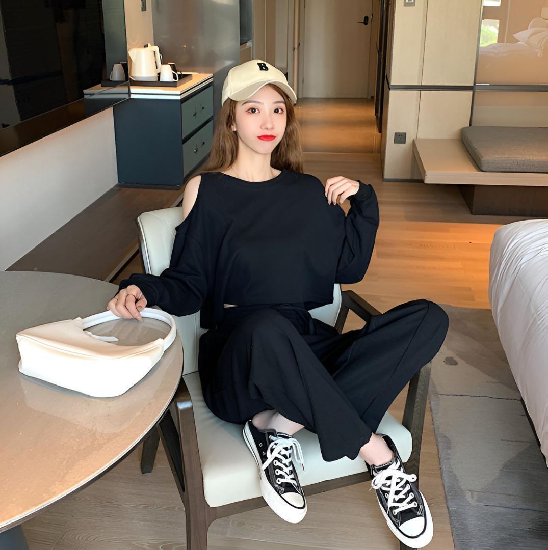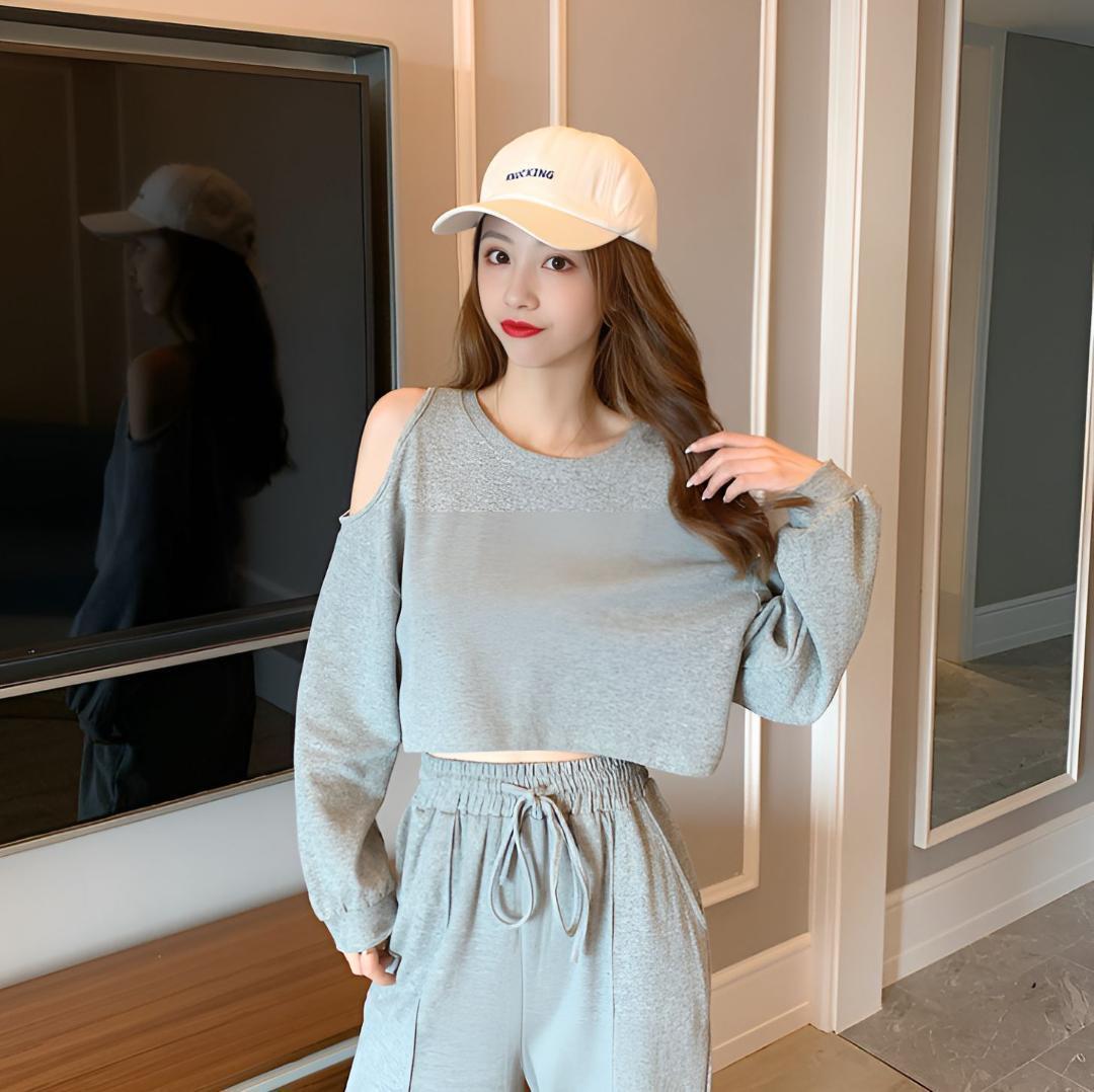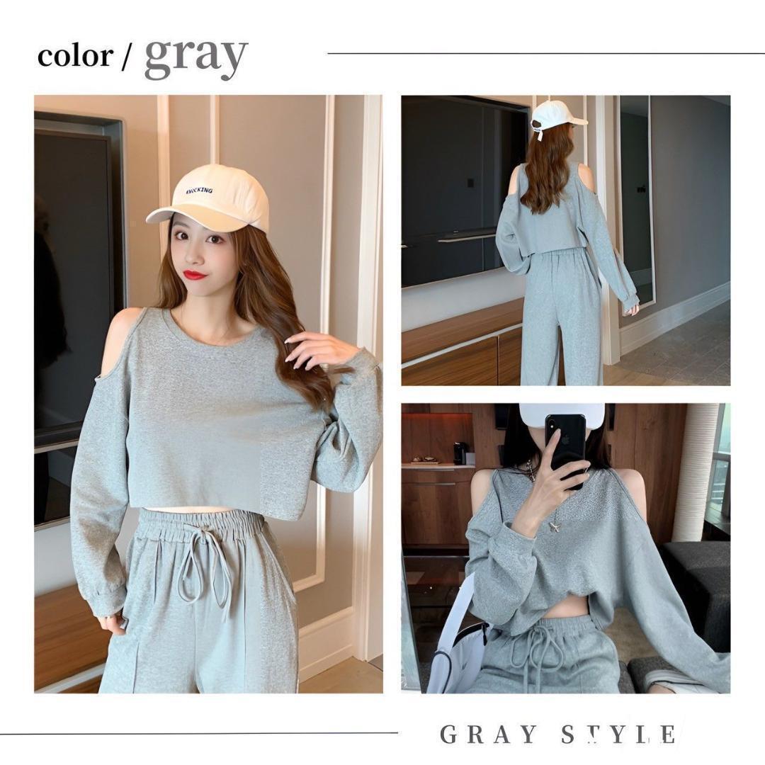 肩開きデザインのレディーストレーナーは、シンプルながらもトレンド感を取り入れた一着です。