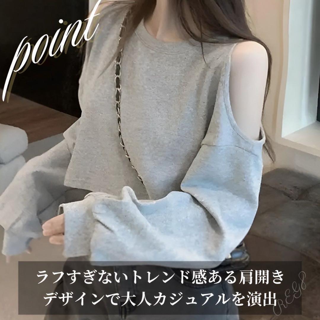さりげない肩開きデザインで、大人っぽい抜け感を演出できるアイテムです。