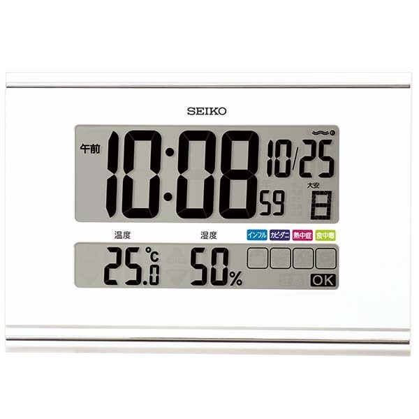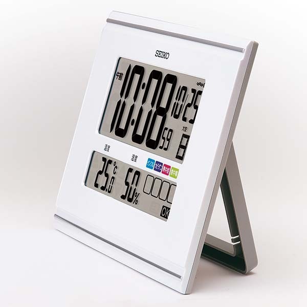 [機能]電波修正機能(40kHz/60kHz自動選局・受信OFF機能つき) 快適環境NAVI機能 フルオートカレンダー表示(2099年12月31日まで) 置用スタンドつき(掛置兼用) 温湿度表示