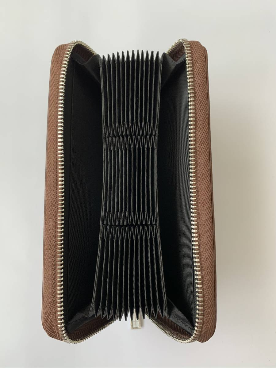 持ちやすい大きめのラウンドジップ ファスナー で、ガバッと大きく開く じゃばら式 なので、取り出しやすくとても使いやすい財布です。