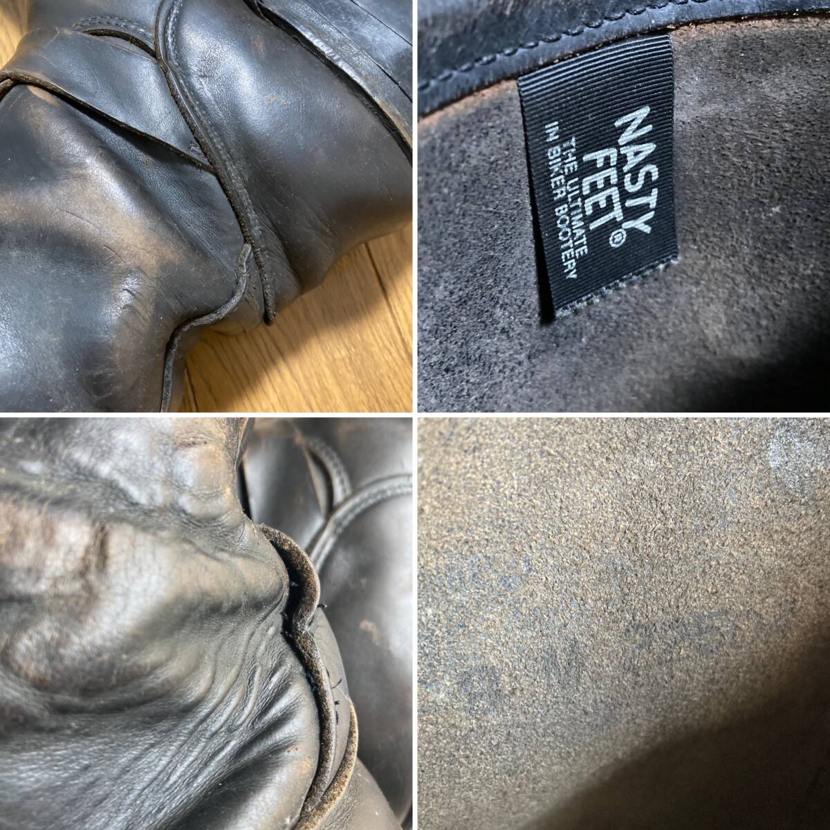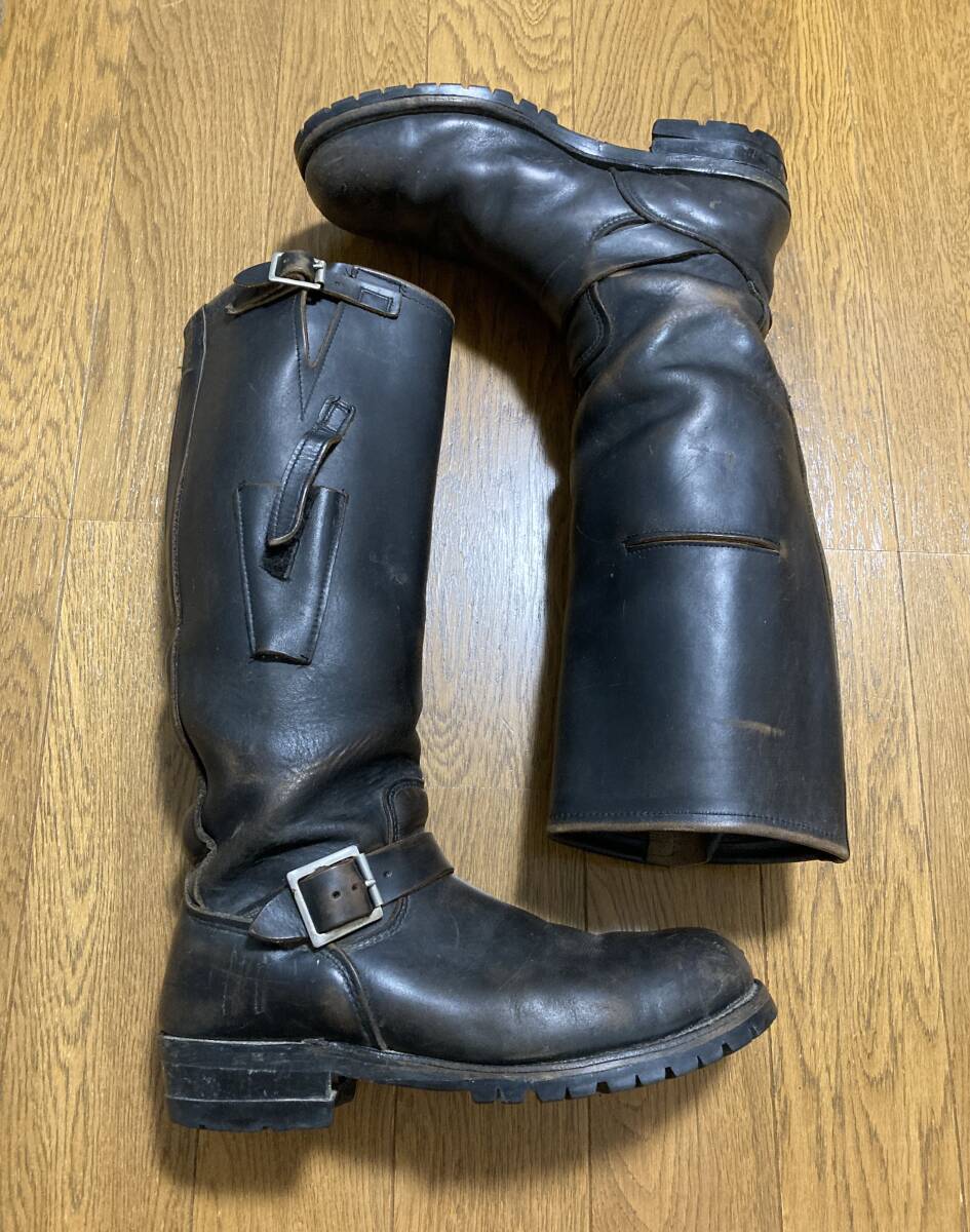 [70s-80s NASTY FEET] 茶芯 ナイフポケット スチールトゥ ロングエンジニアブーツ 9M ブラック ナスティフィート