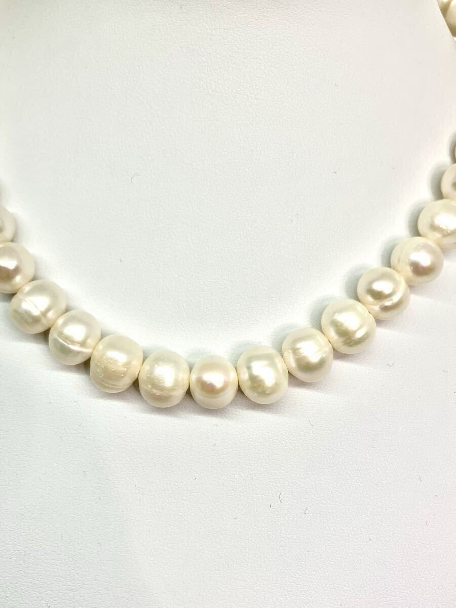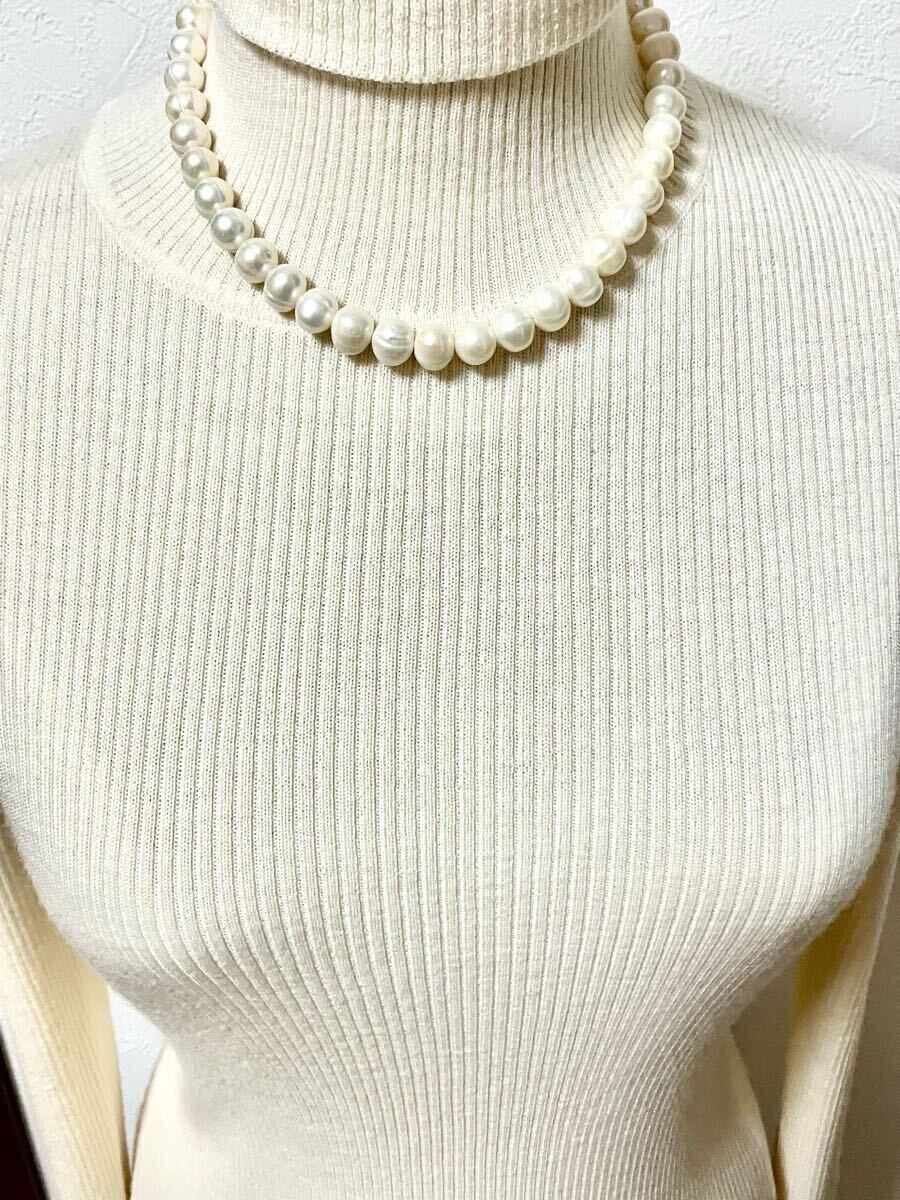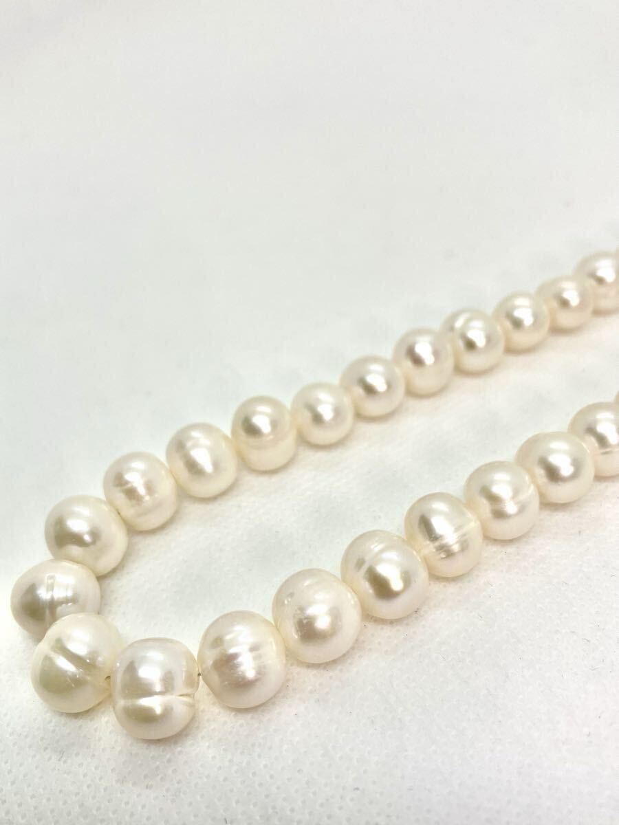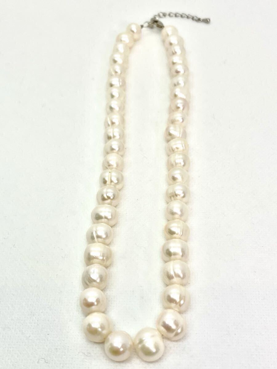 シンプルな一連タイプでフォーマルにも、またバロック型(ポテトパール)の淡水パールを使っているのでカジュアルにもお着け頂けます。