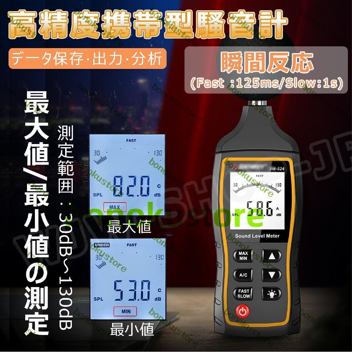 騒音測定計 高精度 記録機能付き SW524 騒音測定器 騒音データの出力 分析 印刷 デジタル騒音計 サウンドレベルメーター 環境測定器 30~130dB測定 ±1.5dB高感度 FAST反応 バックライト搭載 ノイズ測定器