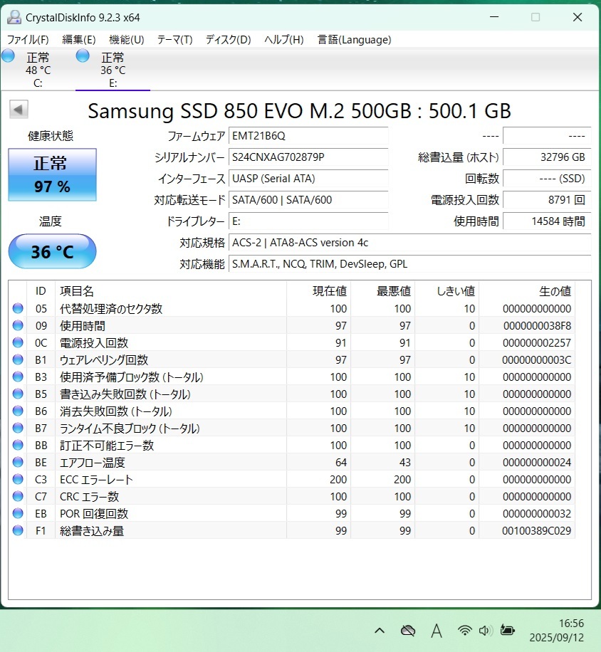 データ消去、フォーマット済み、CrystalDiskInfoにて正常状態を確認済みです。
