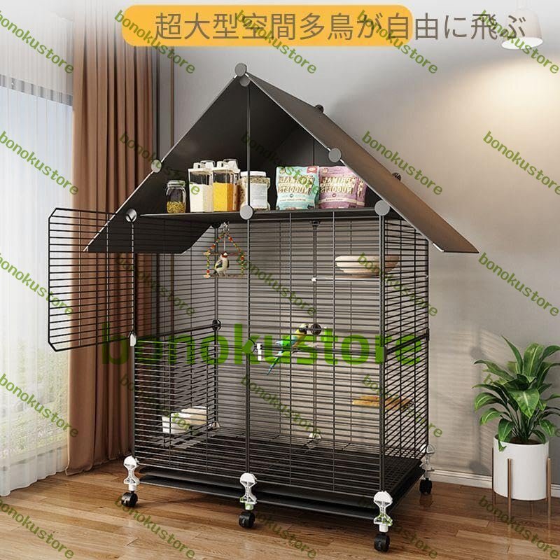 鳥ケージ 複数飼い 豪華ケージ つぼ巣 止まり木 食器 水器を贈る 収納できる屋根 鳥かご 大型 大きい 鳥小屋 鳥籠 屋内 屋外 インコ オウムケージ オカメ セキセイ バードゲージ セキセイインコ オカメインコ 文鳥 ケージ ゲージ 鳥がご (3 階建て、74*37*152 CM ブラック)