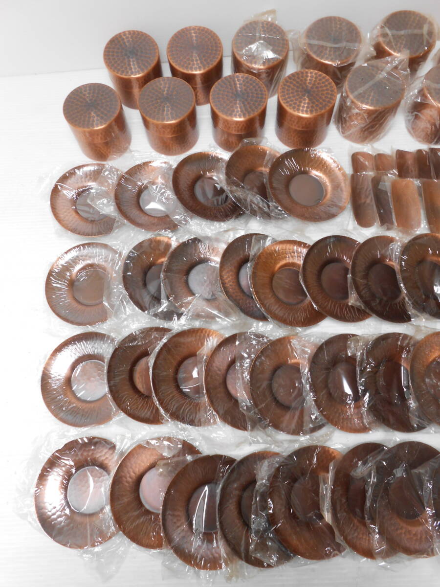 ◆∞3 純銅 茶筒 茶さじ 茶匙 茶托 刻印あり 計72点 セット まとめ 銅製品 SS 茶道具 煎茶道具 茶入 茶たく 皿 容器