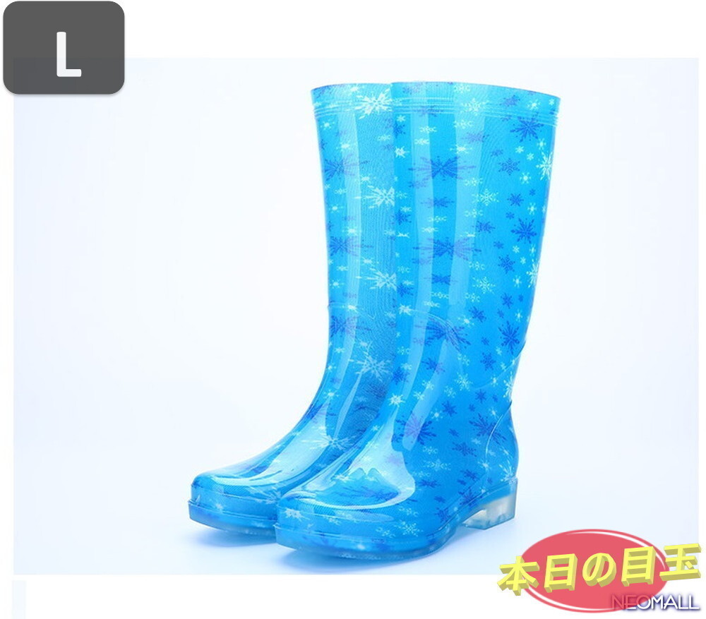 1スタ☆ レインブーツ【502】 Lサイズ7 ブルー 防水 レインシューズ レディース 雨靴 長靴 梅雨対策 防滑 防水 雨 雪 晴れ兼用