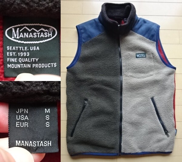 【MANASTASH】ジップアップ フリースベスト クレイジー SIZE:JPN/M (マナスタッシュ,キャンプ,アウトドア)