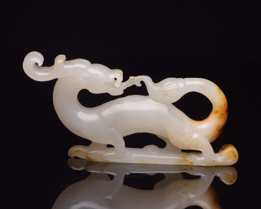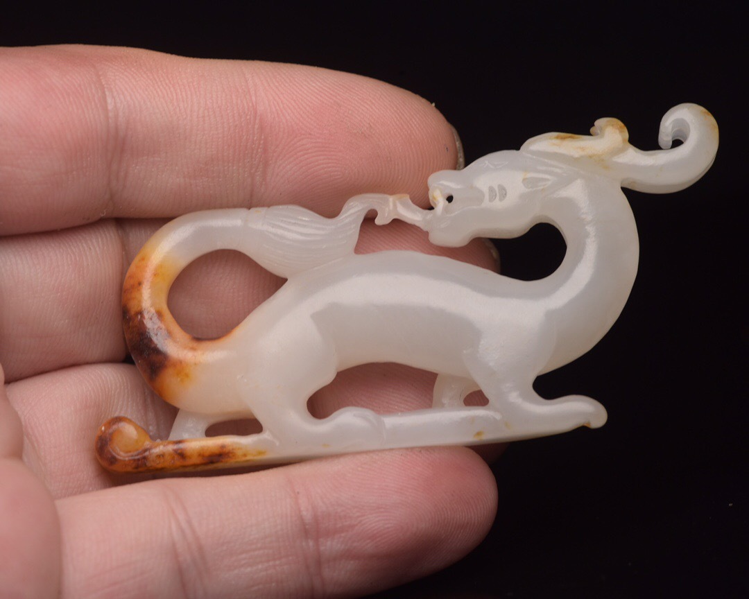【超珍館蔵】和田玉製 細密彫 玉龍 置物 賞物 古賞物 古董品 古美術品 時代物 旧家蔵出 稀少珍蔵品