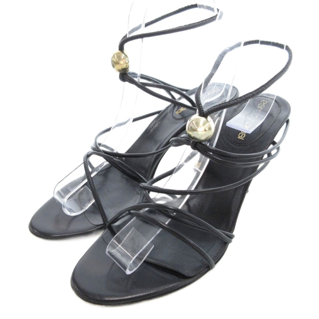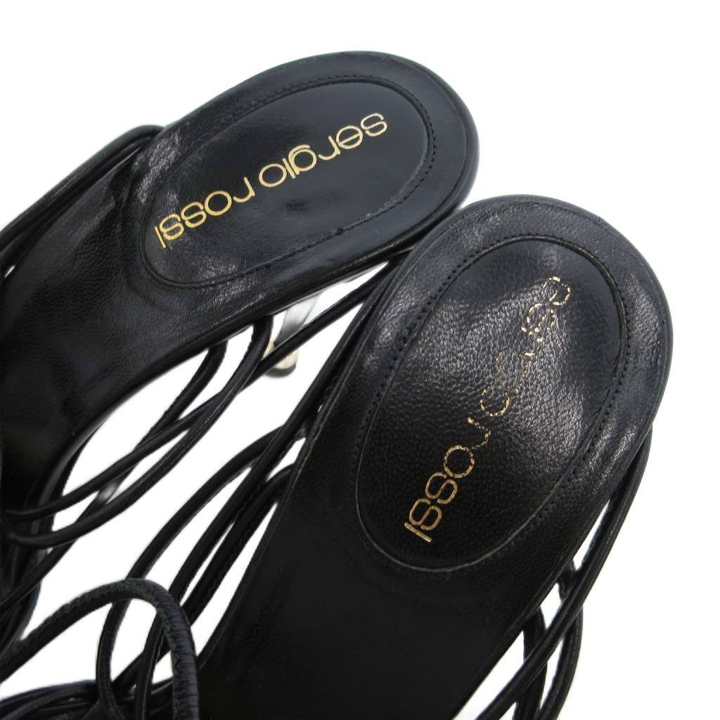 セルジオロッシ Sergio rossi ストラップサンダル 本革 レザー ハイヒール 36 ブラック /UO ■YHS2 レディース
