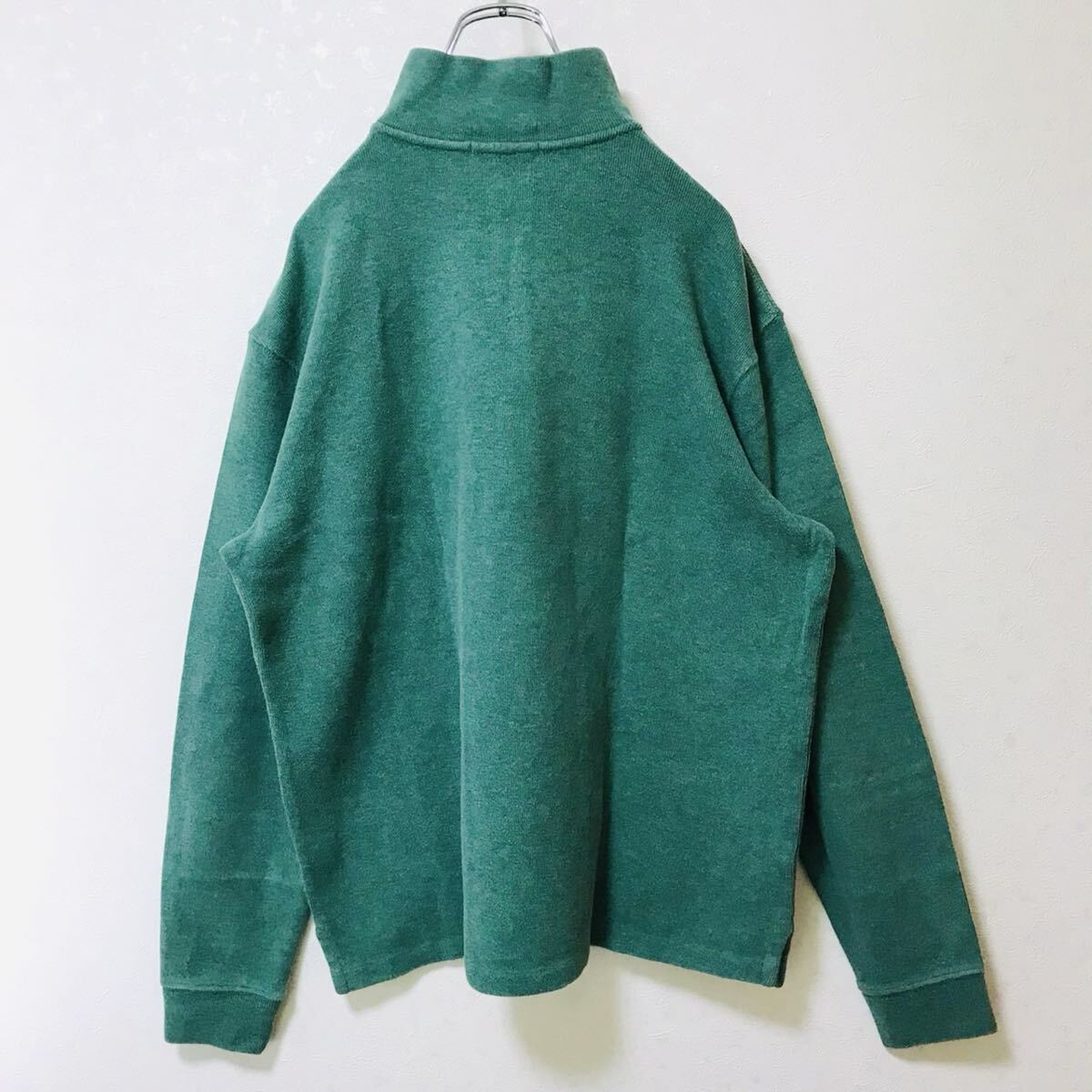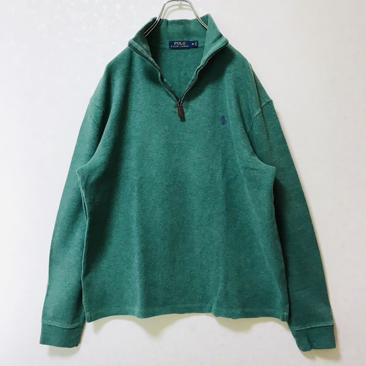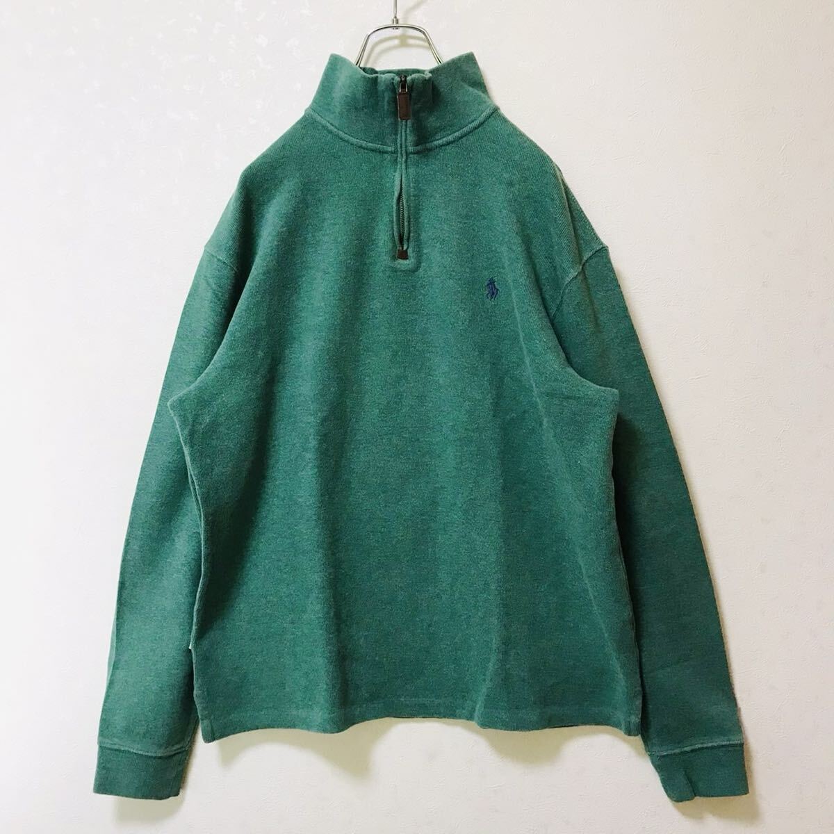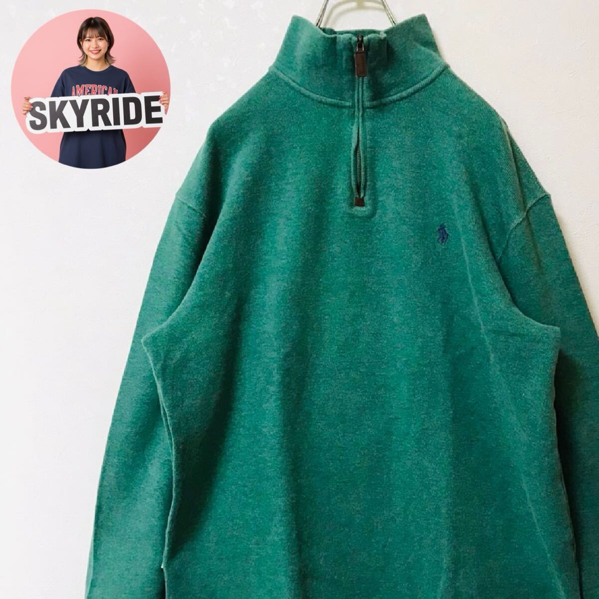POLO RALPH LAURENのハーフジップスウェット。落ち着いたグリーンカラーにワンポイントのポニー刺繍ロゴが映える定番アイテムです。首元はハーフジップ仕様で着こなしの幅が広がり、ジップを開けてラフに、閉めて品よくとシーンによって使い分け可能。