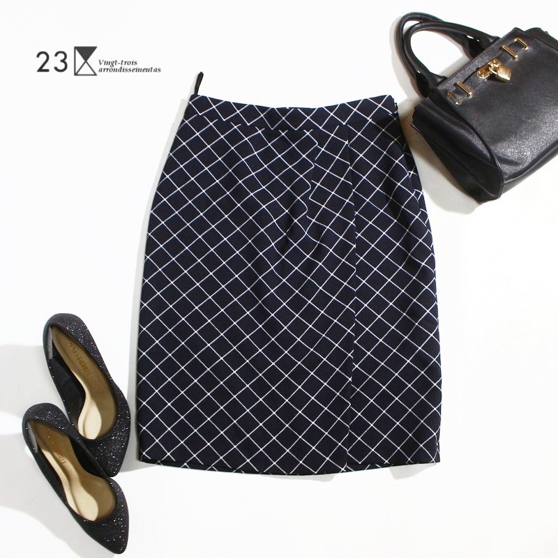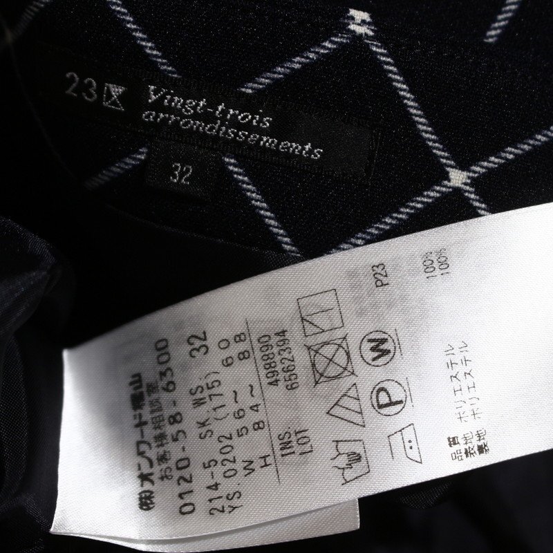 美品 23区 株) オンワード樫山 合物 通年 格子柄 小さいサイズ32 ジャージ― タイトスカート ブラック 黒 オフィス 通勤 小柄 フォーマル