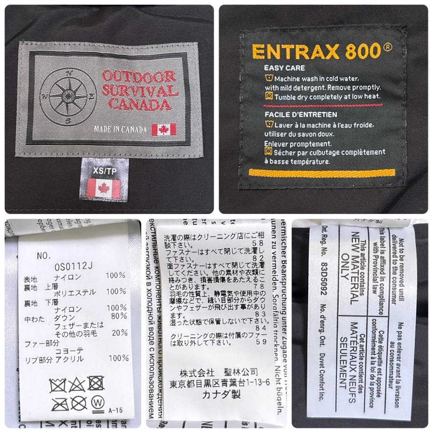 未使用 定価15万 OSC OUTDOOR SURVIVAL CANADA アウトドアサバイバルカナダ -40℃対応 IQNIQ イクニック ダウンジャケット XS S-M 黒 D204