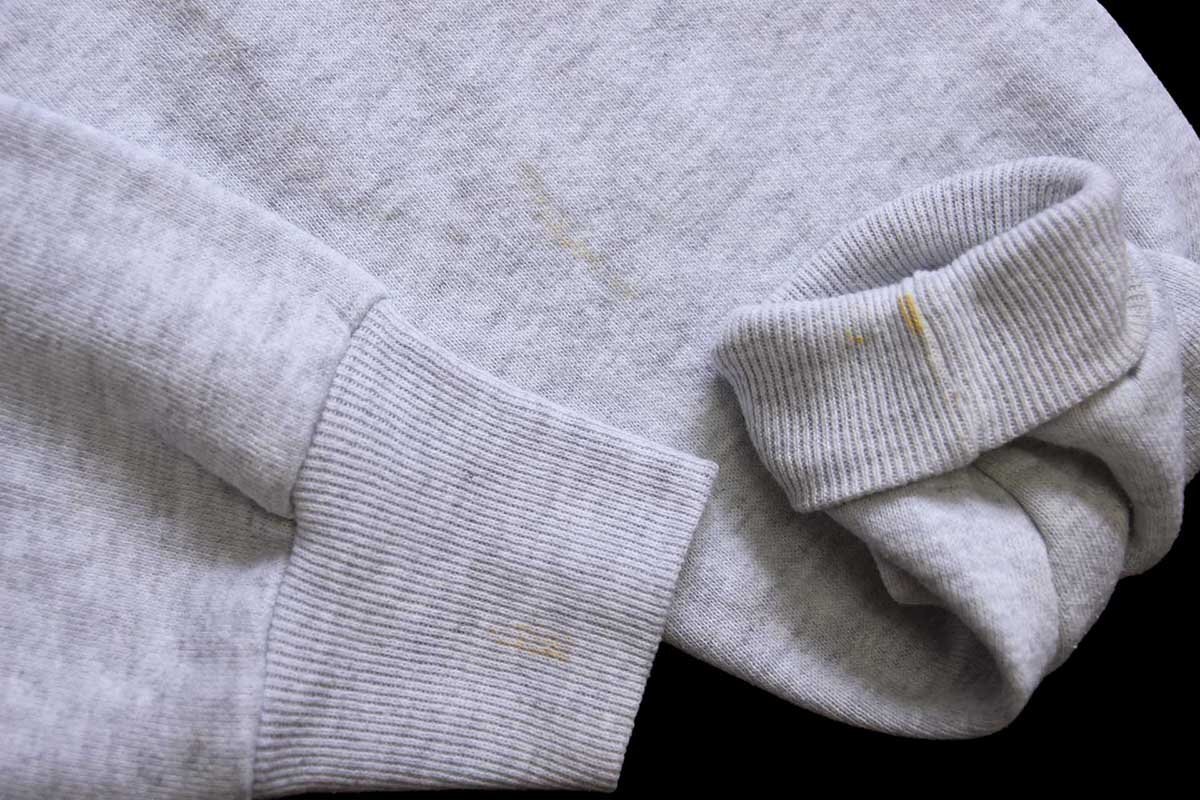 コンディション:多少の着用感があり、喉元左や左袖、右袖リブに僅かなペンキ汚れがあります。目立つダメージや酷い汚れはなく、問題なく着用いただける程度です。