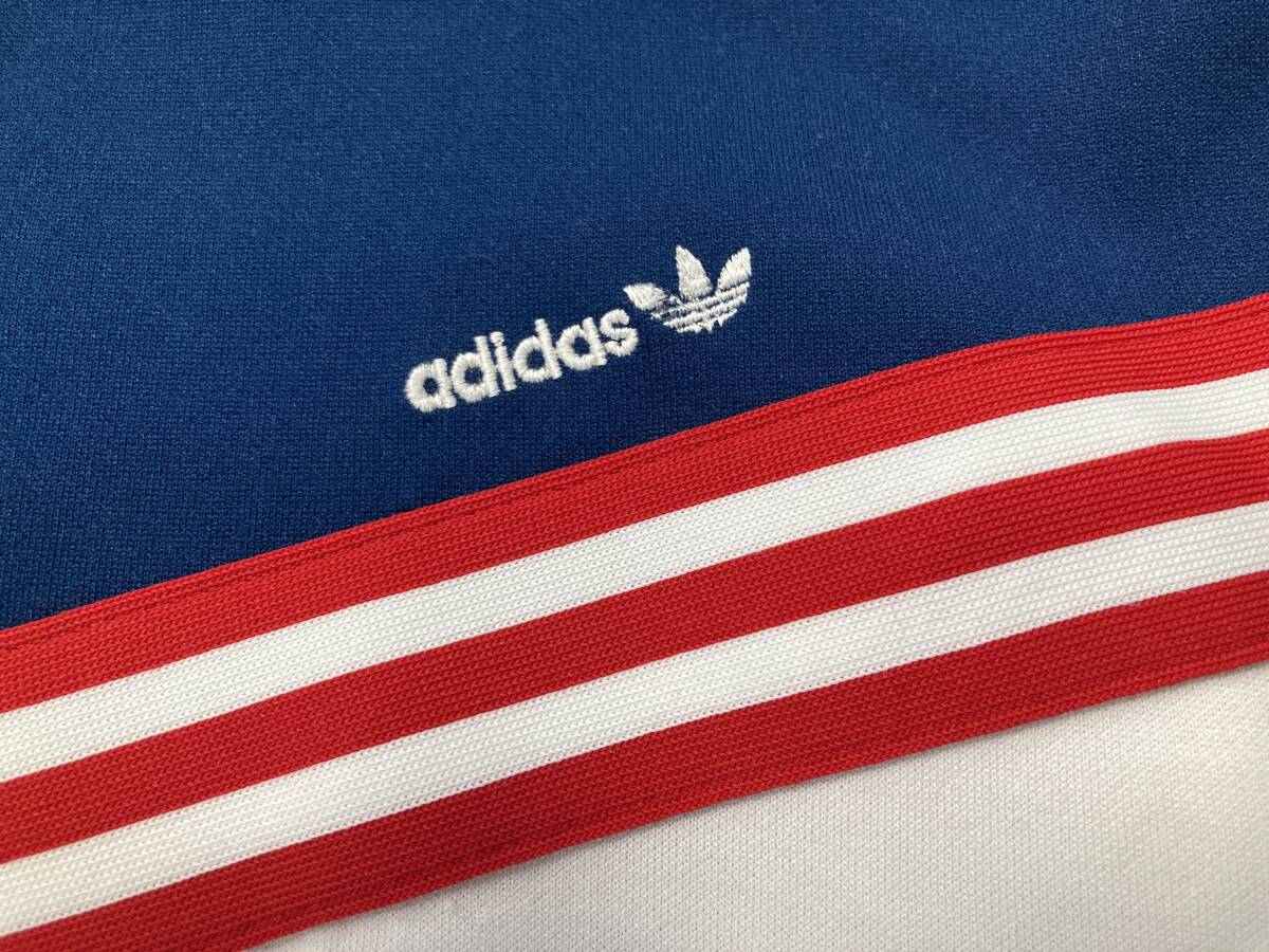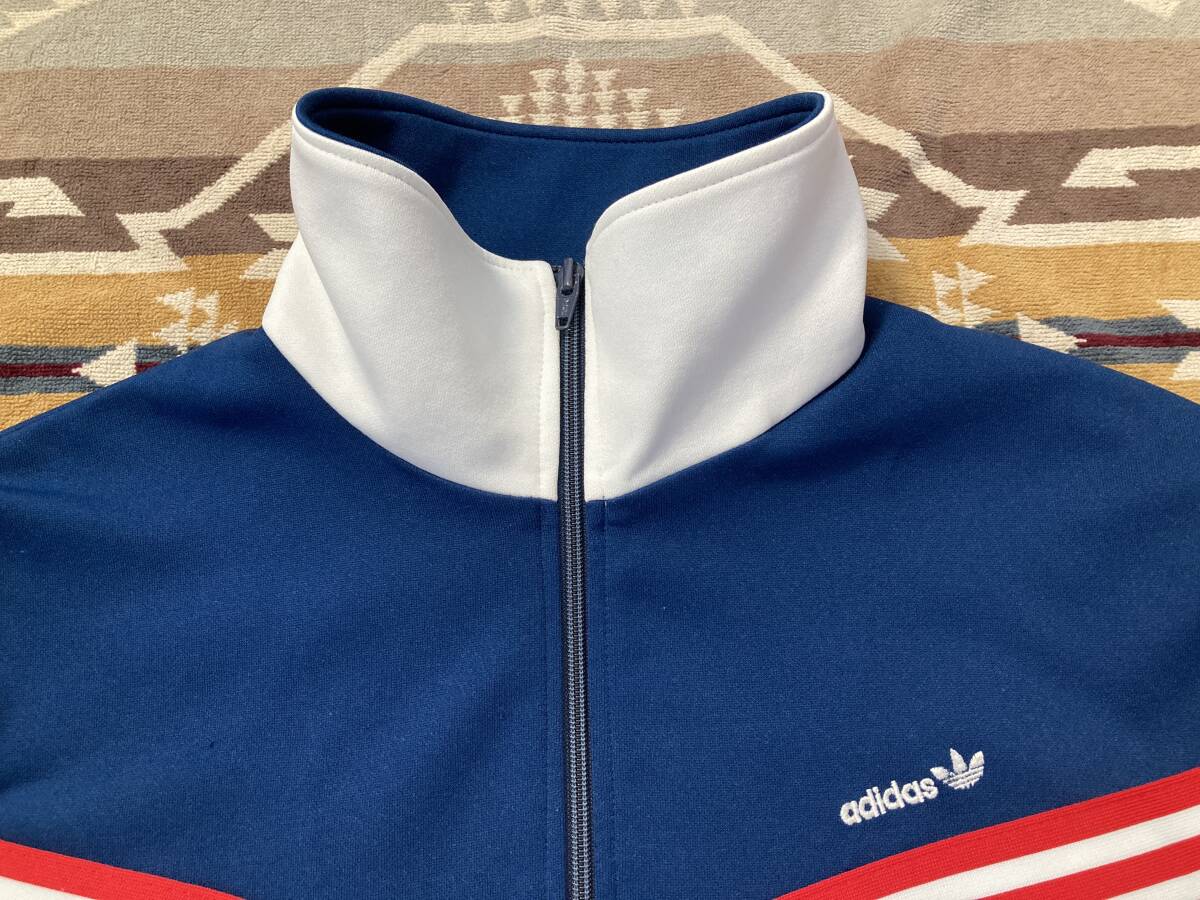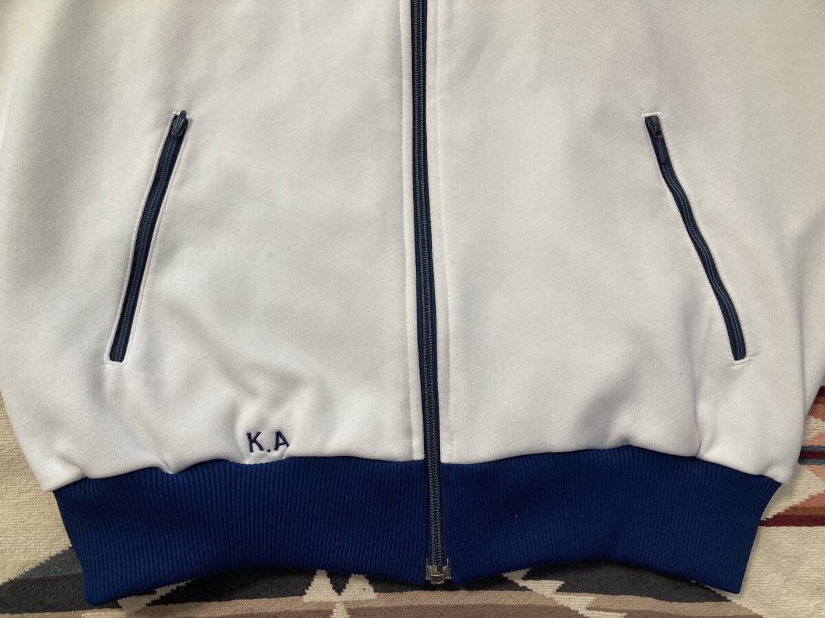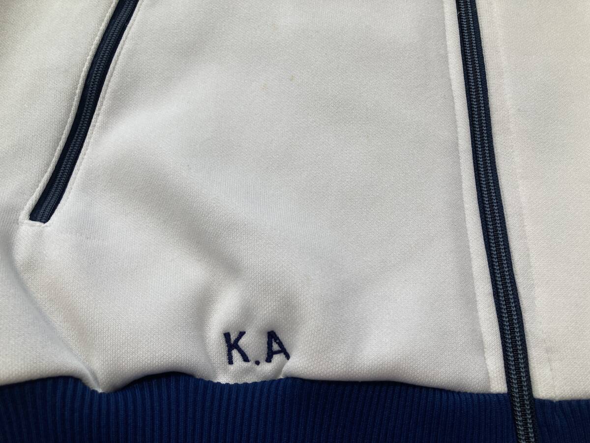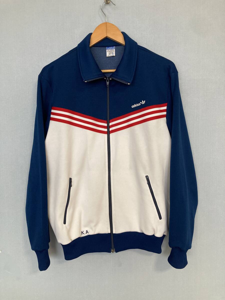 商品名:ビンテージ adidas ジャージ サイズ:表記O(M~L位※実寸を参考にしてください) 平置き肩幅48,5cm 身幅(脇下~脇下)59cm 着丈(襟付け根~裾)66cm 袖丈(肩~袖先)63,5cm ※素人採寸の為多少の誤差はご了承下さい。 カラー:ホワイト、ネイビー、レッド 状態:株式会社デサント。YKKZIP。ZIPポケット×2。フロント裾上にK.A刺繍入り。幾分かの使用感、小さな汚れありますが目立ったダメージ無く一般古着程度だと思います。 発送方法:レターパックプラス(配達記録付600円) ※古物になりますので神経質な方、御理解の無い方の御入札はお控え下さい。送料、振込手数料は落札者様の御負担となります。ノークレーム、ノーリターンでよろしくお願い致します。