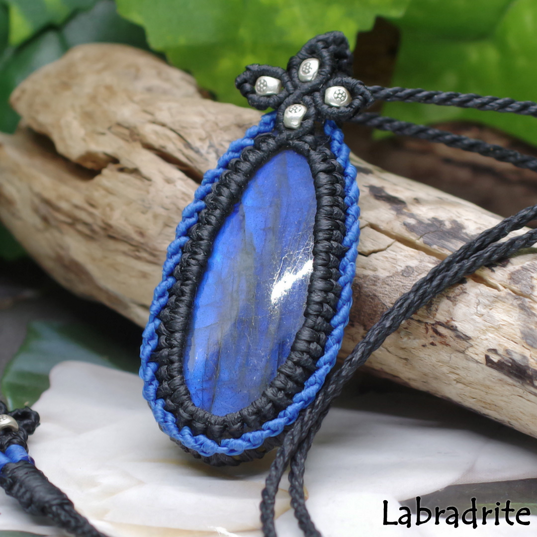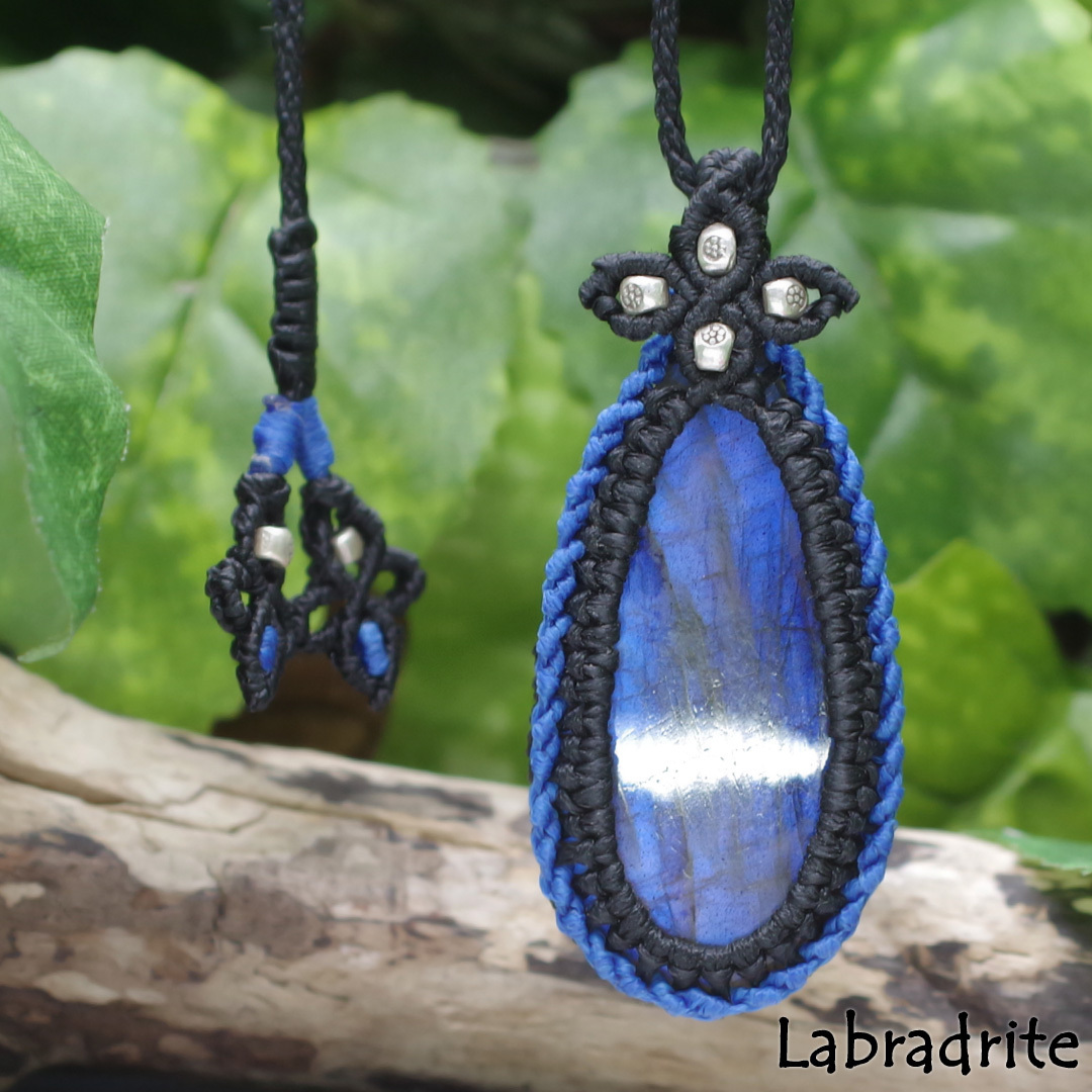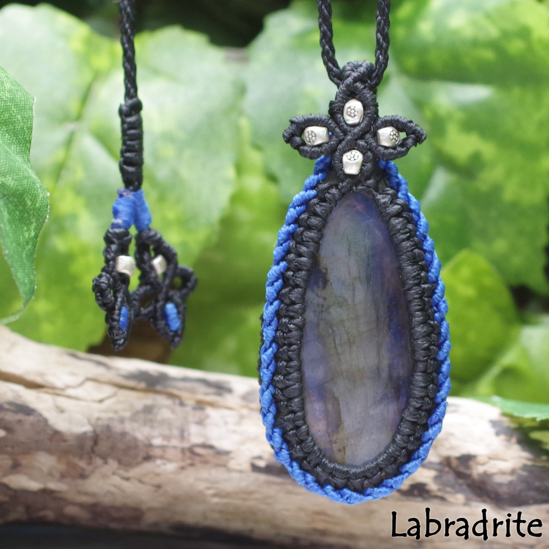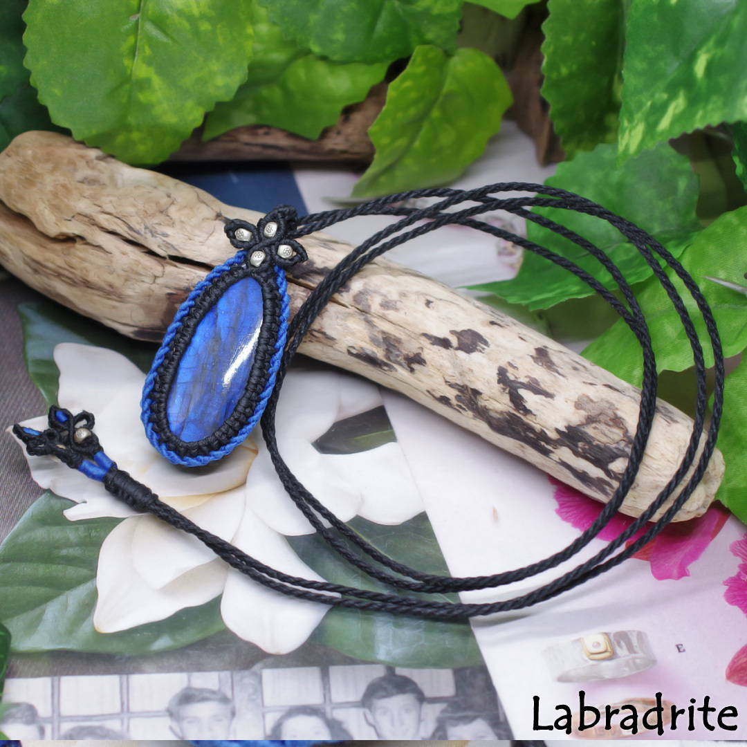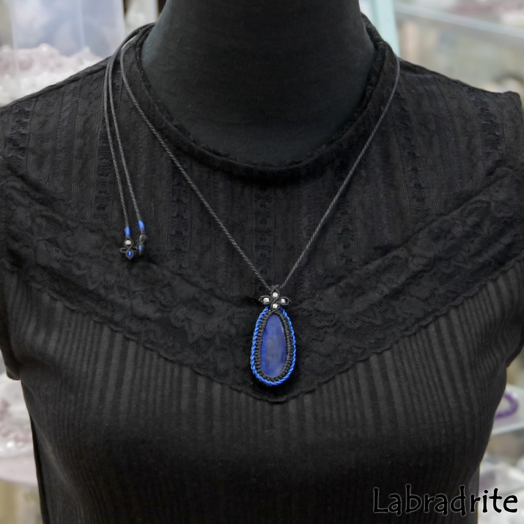 月と太陽を象徴する魔石『ブルーラブラドライト』マクラメ編みトップネックレス3