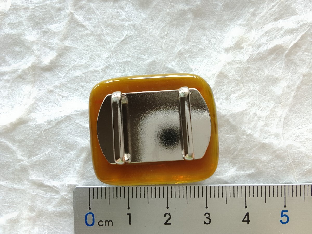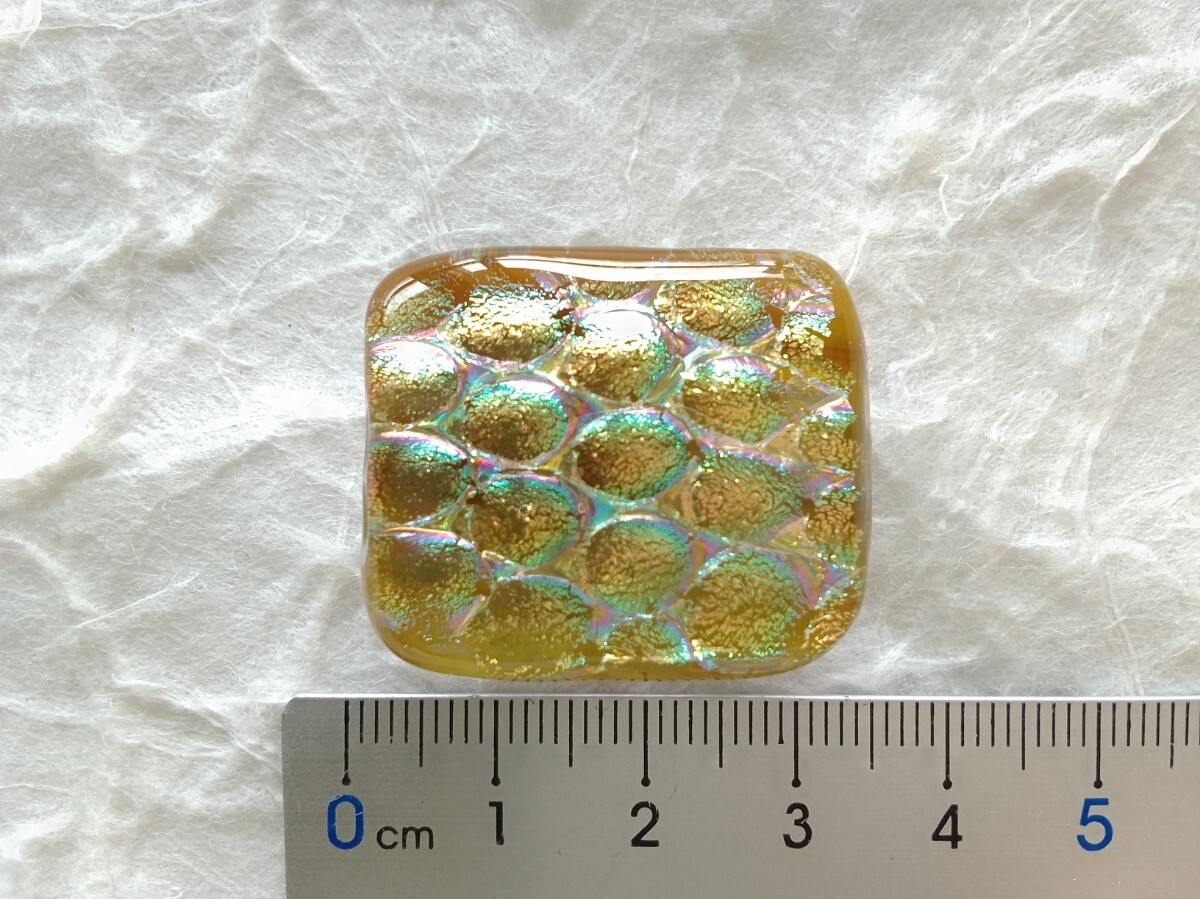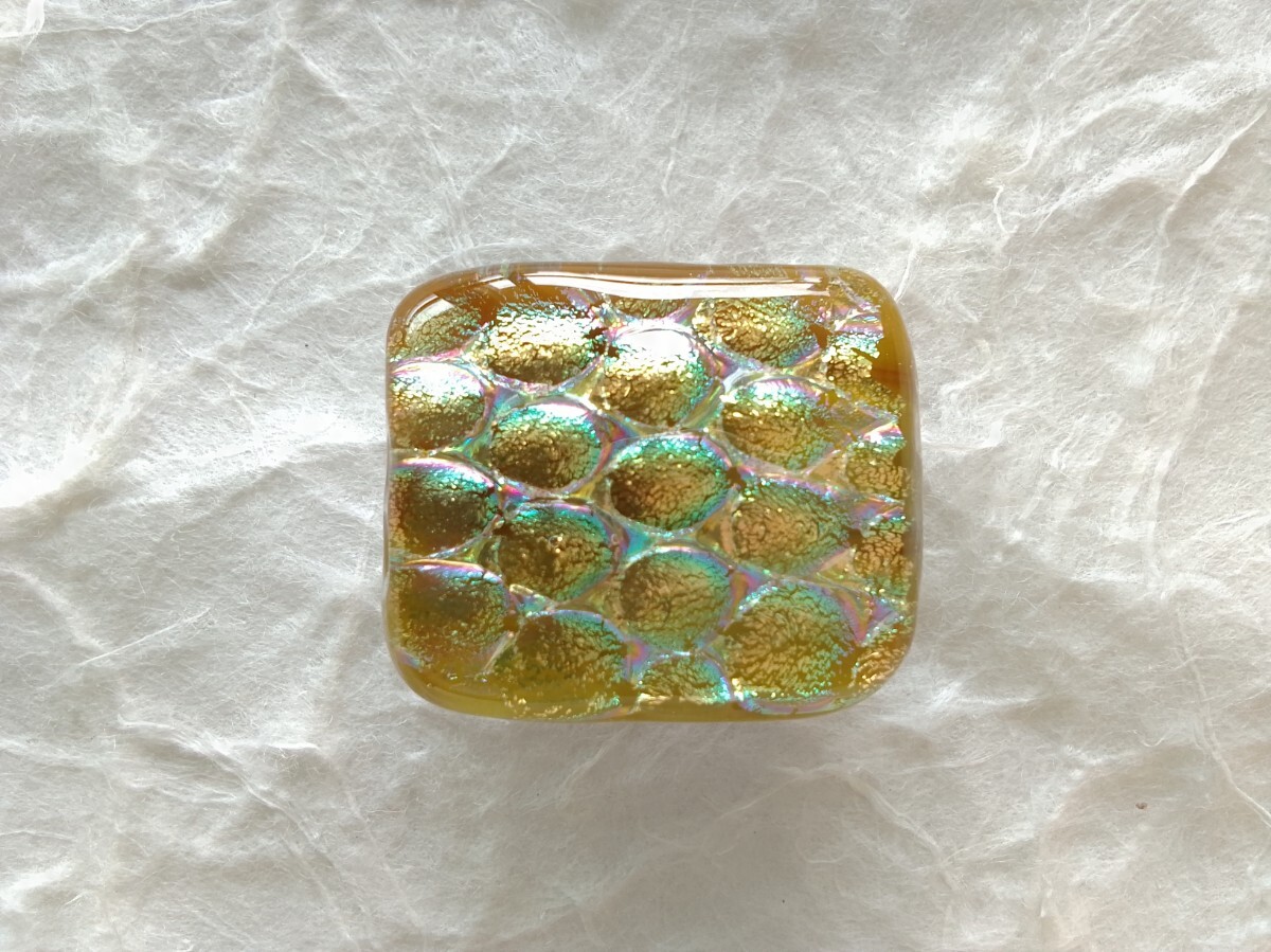 美しいダイクロガラスを電気炉で焼いた帯留め。