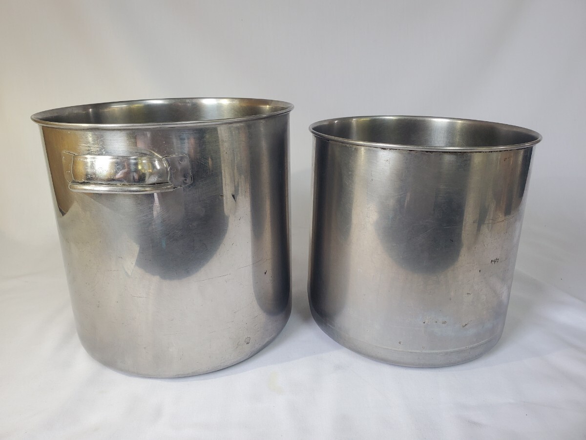 ステンレス 寸胴 鍋 ふたなし 2点まとめて キッチンポット 業務用 調理器具 厨房用品 料理鍋 飲食店 炊き出し 中古品 ★S-32/02