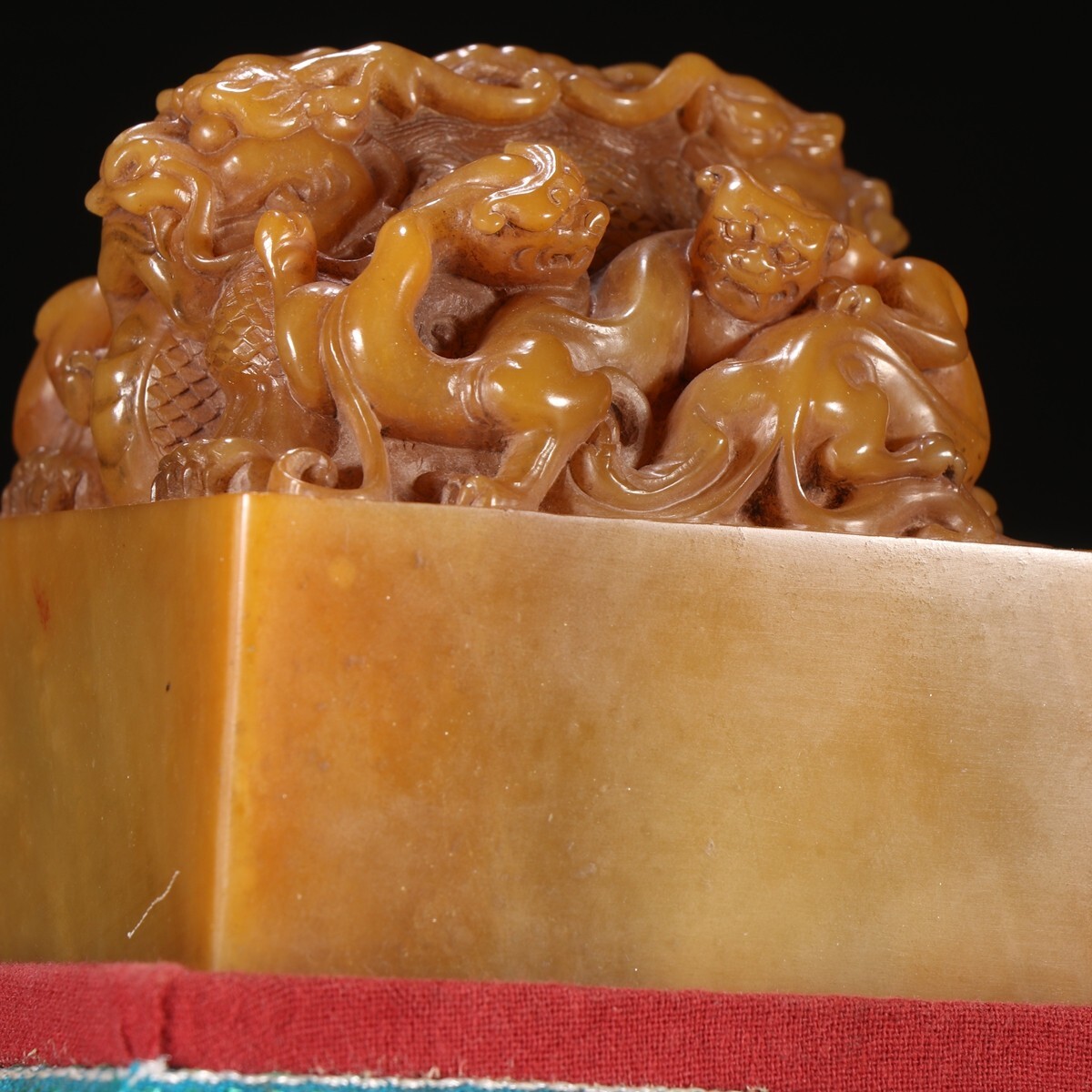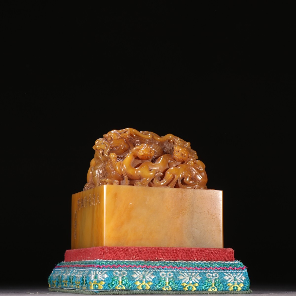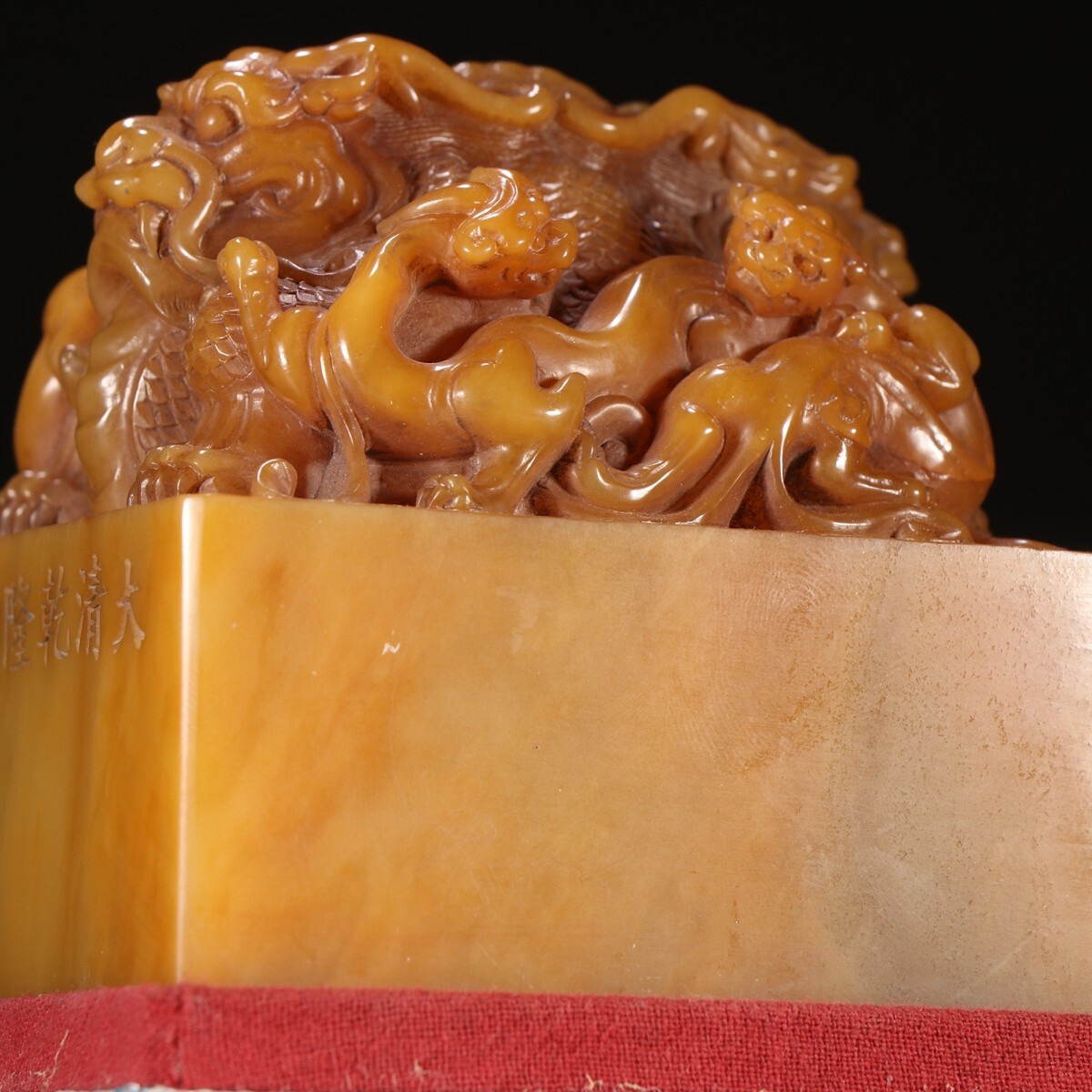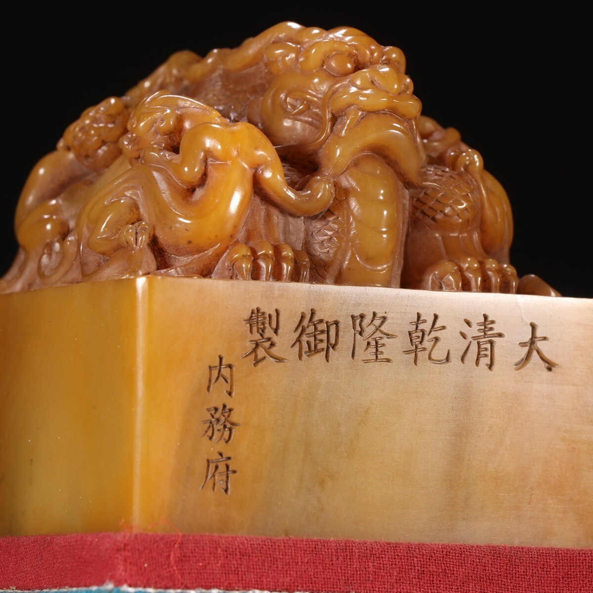 「清 大清乾隆御製 老寿山石 田黄石彫り 蛟龍鈕印章」極細工 擺件 古賞物 中国古美術 旧蔵出