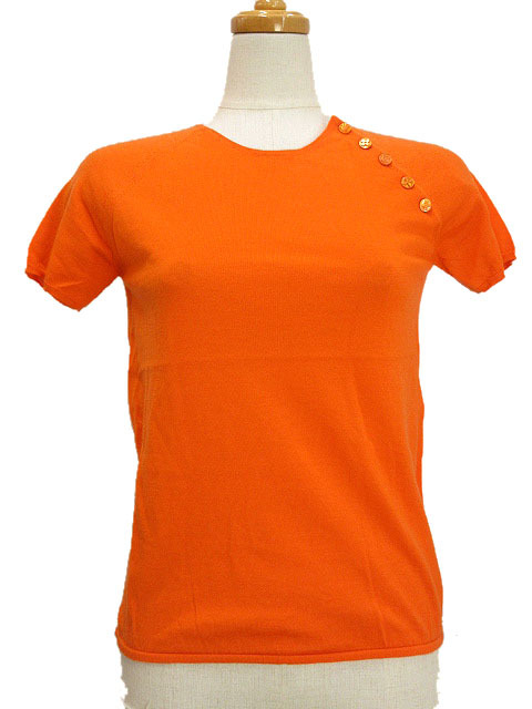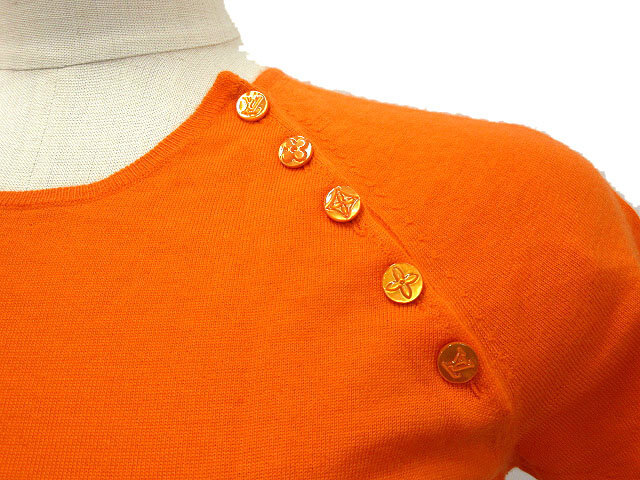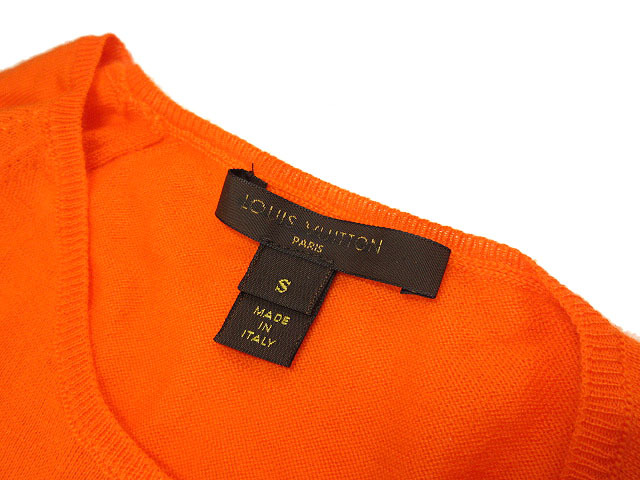 ルイヴィトン LOUIS VUITTON カシミヤ ニット プルオーバー S オレンジ 半袖 カットソー トップス カシミア レディース