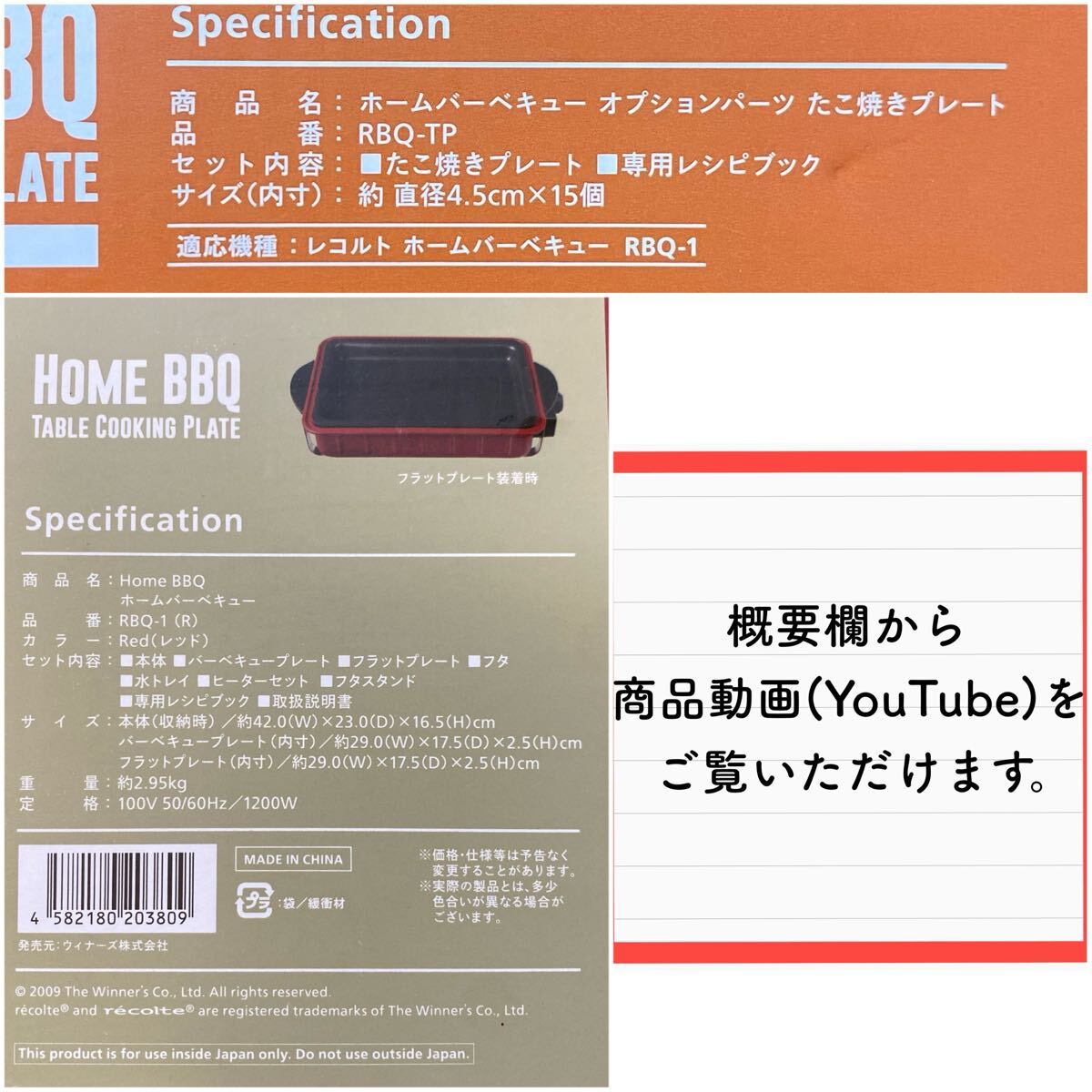 不明・本体RBQ-1(R)、たこ焼きプレートRBQ-TP、スチーム深鍋RBQ-CS