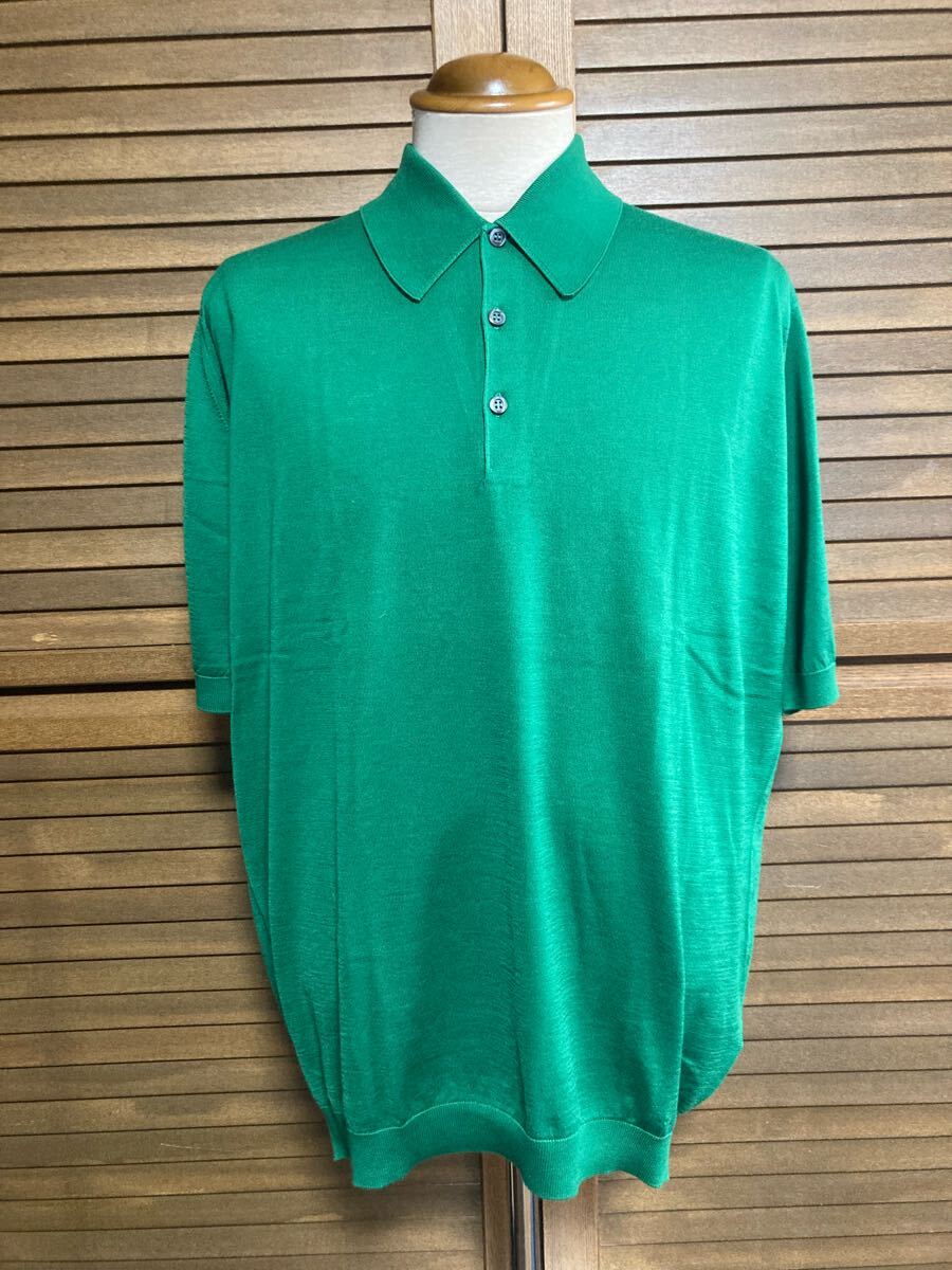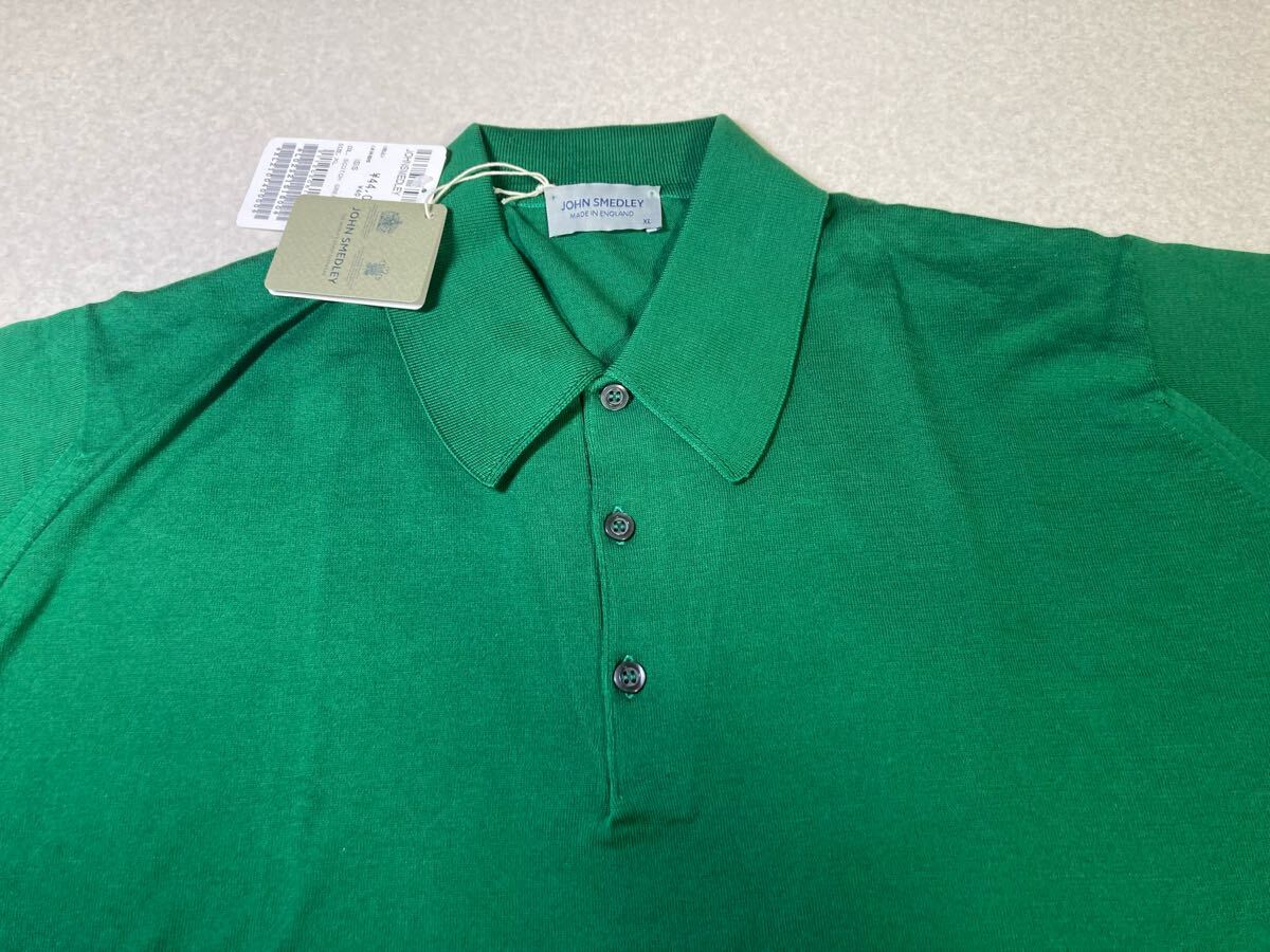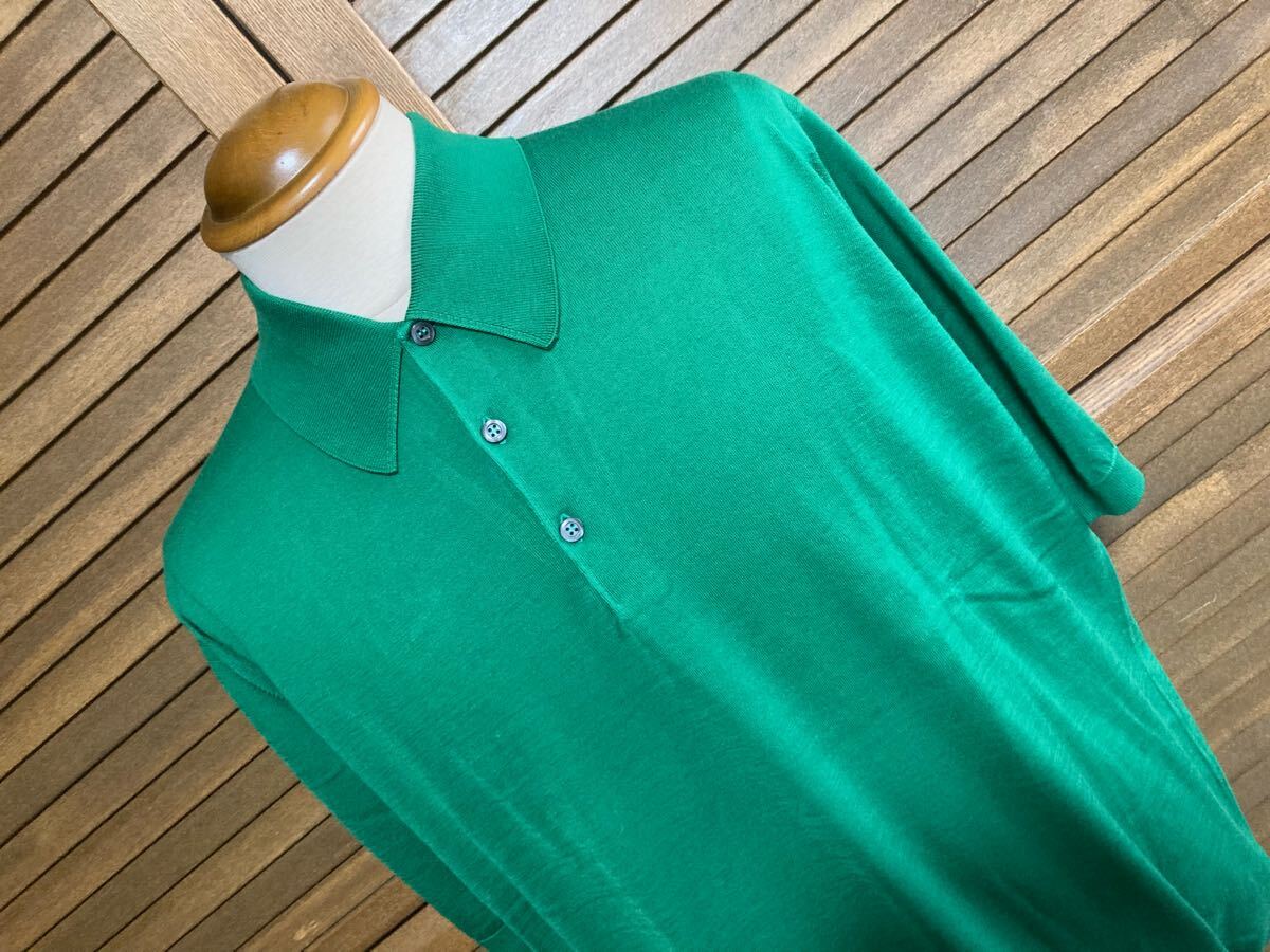 新品 ジョンスメドレー(英) 半袖ポロシャツ 希少XL シーアイランドコットン30ゲージ グリーン イージーフィット 定価4.4万円