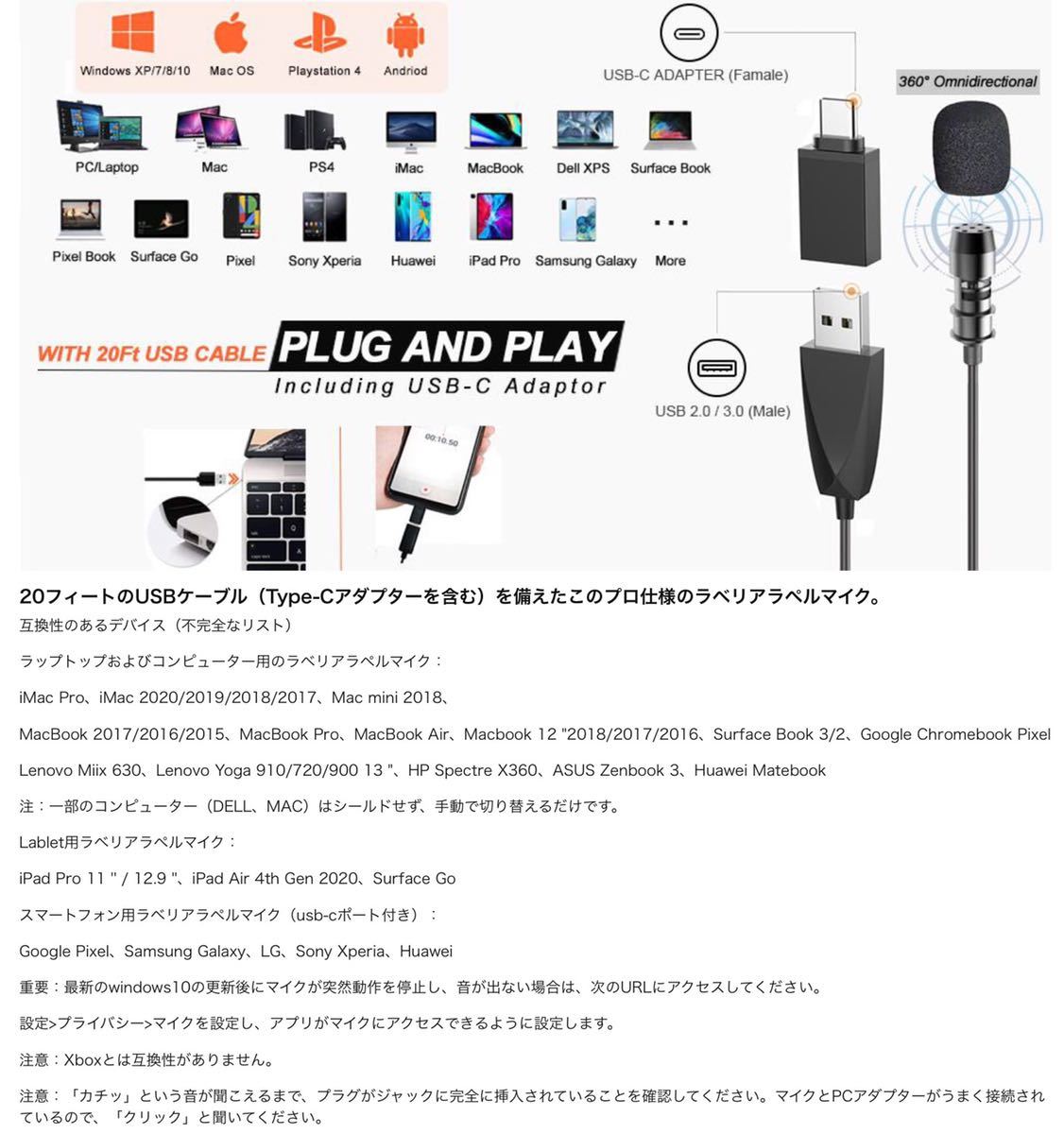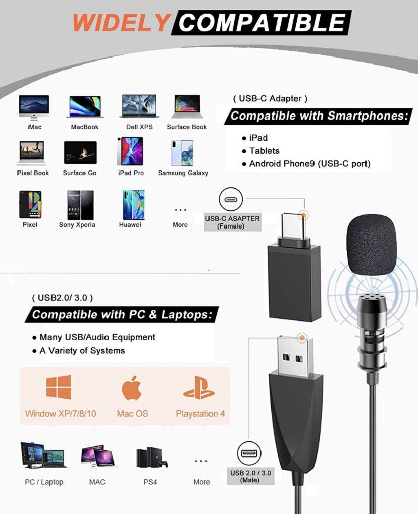 ほとんどの機器との互換性 - ラペルマイクは軽量で丈夫です。iPhone、iphone X、iPad、Android / GALAXY電話、Sony、LG、BlackberryとWindowsスマートフォン、Retina Macbook Pro Airと他のAndroidデバイス、Hero2、hero3、hero3 +に対応 (Hero 4/5/6には対応していません)PC /ラップトップ、PS4、ZOOM / TASCAMレコーダー、DSLR、ビデオカメラ、Canon PowerShotなど。