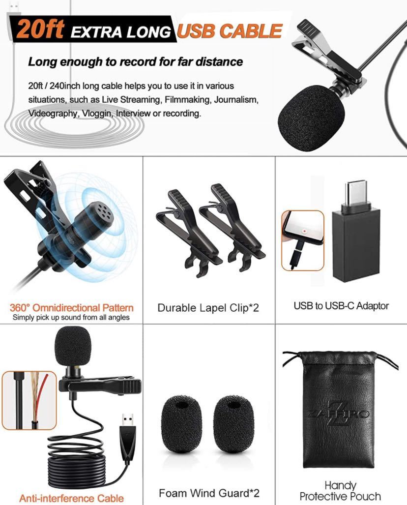 20フィート(6m)延長コード - 各ラベリアマイクには1PCS 20フィートTRRSメス - TRRSオス延長ケーブルが含まれているので、ラペルマイクを外さずに室内を移動できます。 コードは24K金メッキのコネクター、周波数応答20Hz-20KHz、0.01%の歪み、高いS / N比と入力から出力へのフルパワーの伝送です。