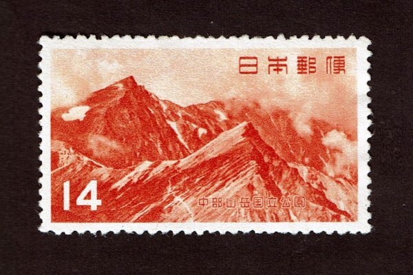 第1次国立公園切手 中部山岳 4種完 糊落ち 未使用
