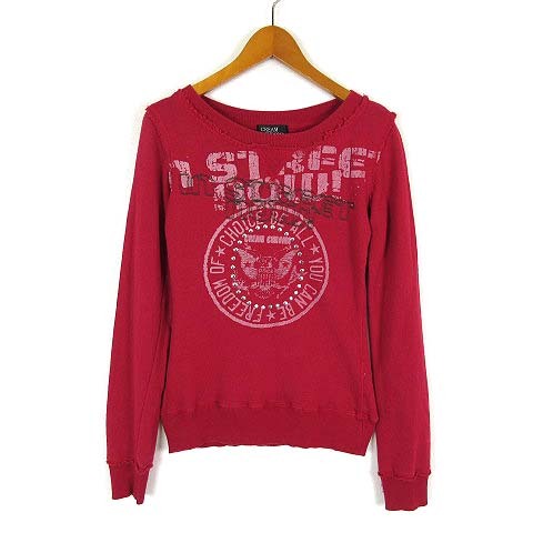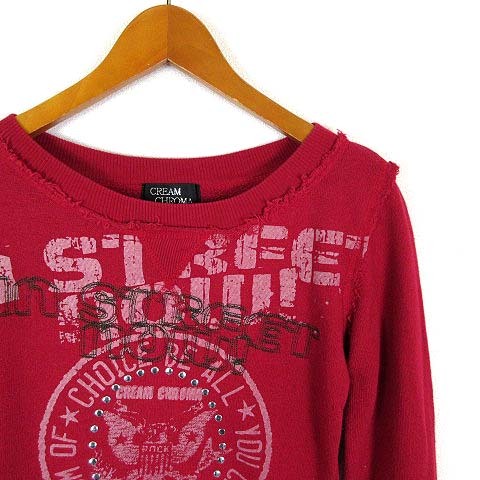 クリームクロマ CREAM CHROMA トレーナー スウェット ロゴ スタッズ ダメージ加工 コットン 長袖 M 赤 レッド オフ白 緑 グリーン