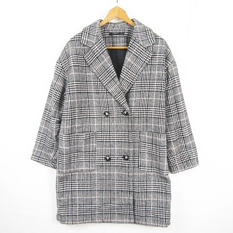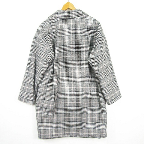 ヘザー Heather ロング コート ダブル 中綿 毛 綿 レーヨン F グレー チェック kz12734 レディース