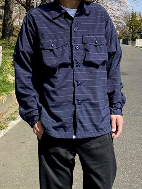 ナイロン タフタ ボーダー シャツ 紺 ネイビー L