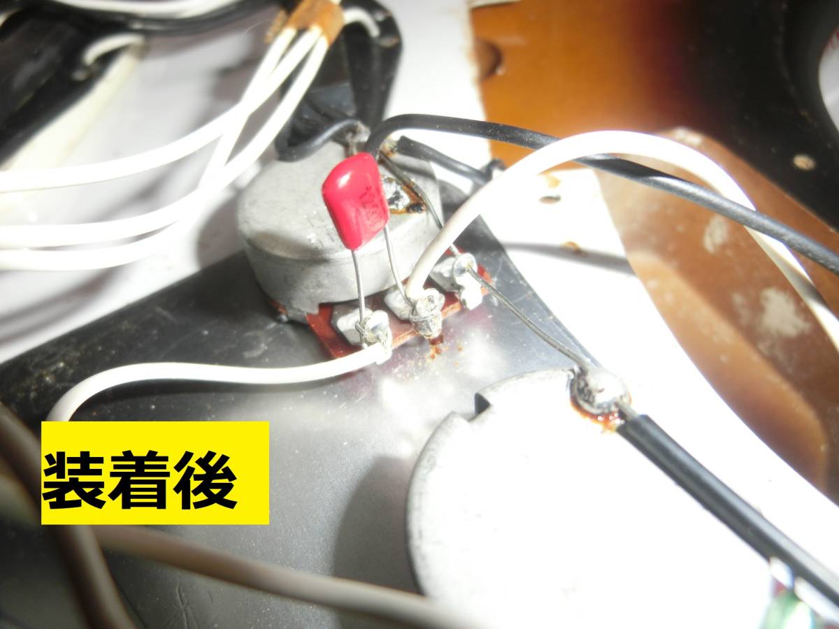 ハンダ付けなら確実ですが、ラジオペンチで曲げて絡ませるだけでも装着出来ますので、ビンテージでも可逆的に改造可能です。(装着前後の写真を参考ください)