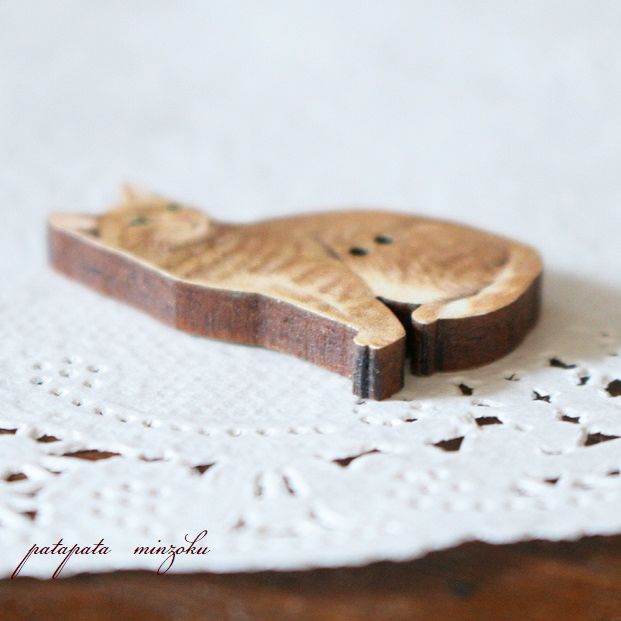 ネコ(茶トラ) フランス 製 木製ボタン アトリエ ボヌール ドゥ ジュール ねこ ネコ 猫 小物 雑貨 パタミン ボタン 刺繍 ハンドメイド