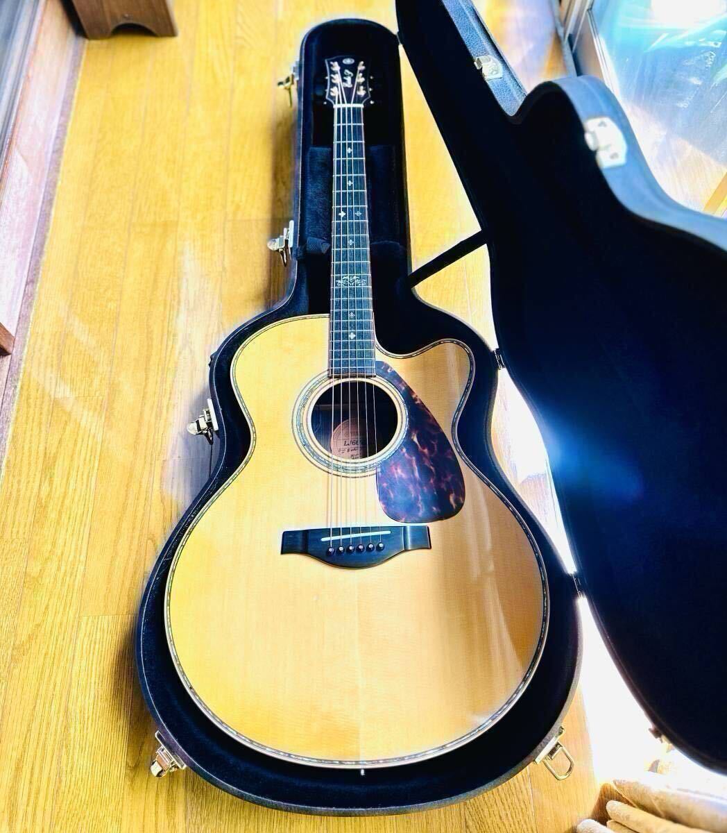 LJ66 custom YAMAHAローズウッド最高峰のカスタムモデル 煌びやかでバランス良く鳴る音色は間違いなし。 既に廃番のモデルなので、これから高騰していくと思います。 当時の新品オーダーは約90万円ほどでしたが 現在同じものをオーダーするとかなり納期がかかり金額も100万円は軽く超えると思われます。 カスタムにしか無い ロゼッタの二重インレイや指板の豪華なインレイ バックにもグルリと美しいインレイが施されていて ルックもかなり豪華な仕様となっております。 多少打痕はございますので できるだけわかりやすくトップの打痕がわかるよう○で囲っておきますのでご確認ください。 画像では上手く写らない小さな打痕もございますが 当方は全く気にならないし コンディションにもなんら問題はございませんが 美品コレクターや、転売をお考えの方は ご購入を避けてください。 これからどんどん弾き鳴らして行く方には かなりオススメの一本です。 ご不明な点は必ずご購入前にお気軽にお問い合わせ下さい。 また、購入後の交渉はご遠慮ください。 ご縁がございましたらよろしくお願い致します。