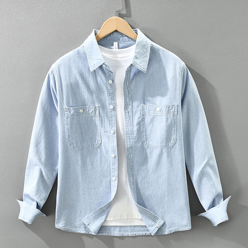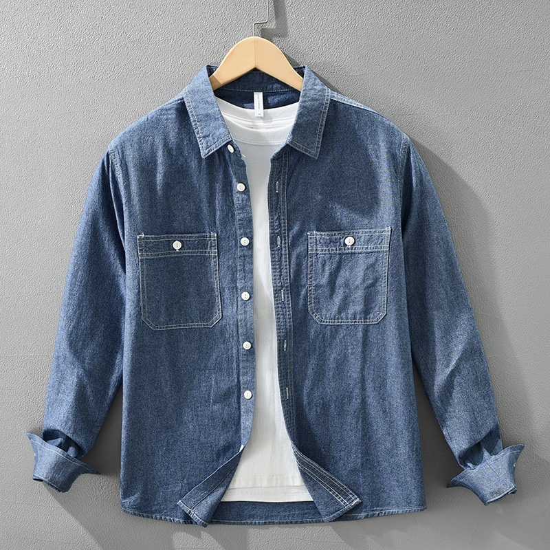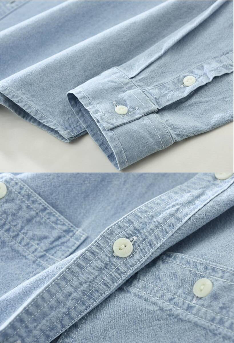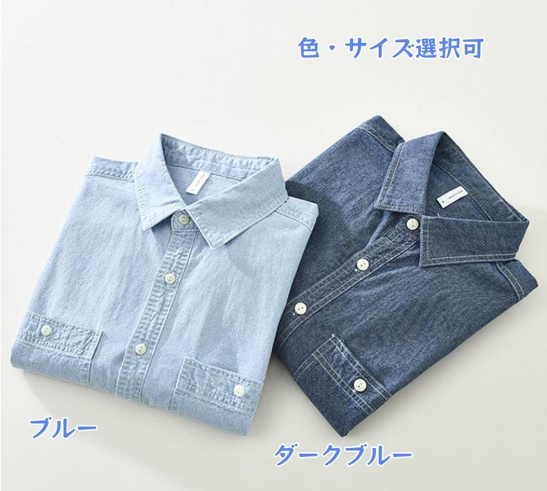 ワークシャツ デニム長袖シャツ デニムシャツ シャツジャケット 新品★メンズ トップス ウエスタンシャツ カーゴシャツ【7797】ダークブルー XL
