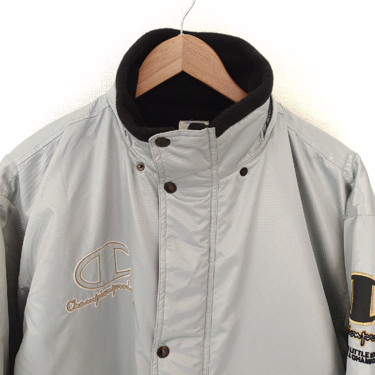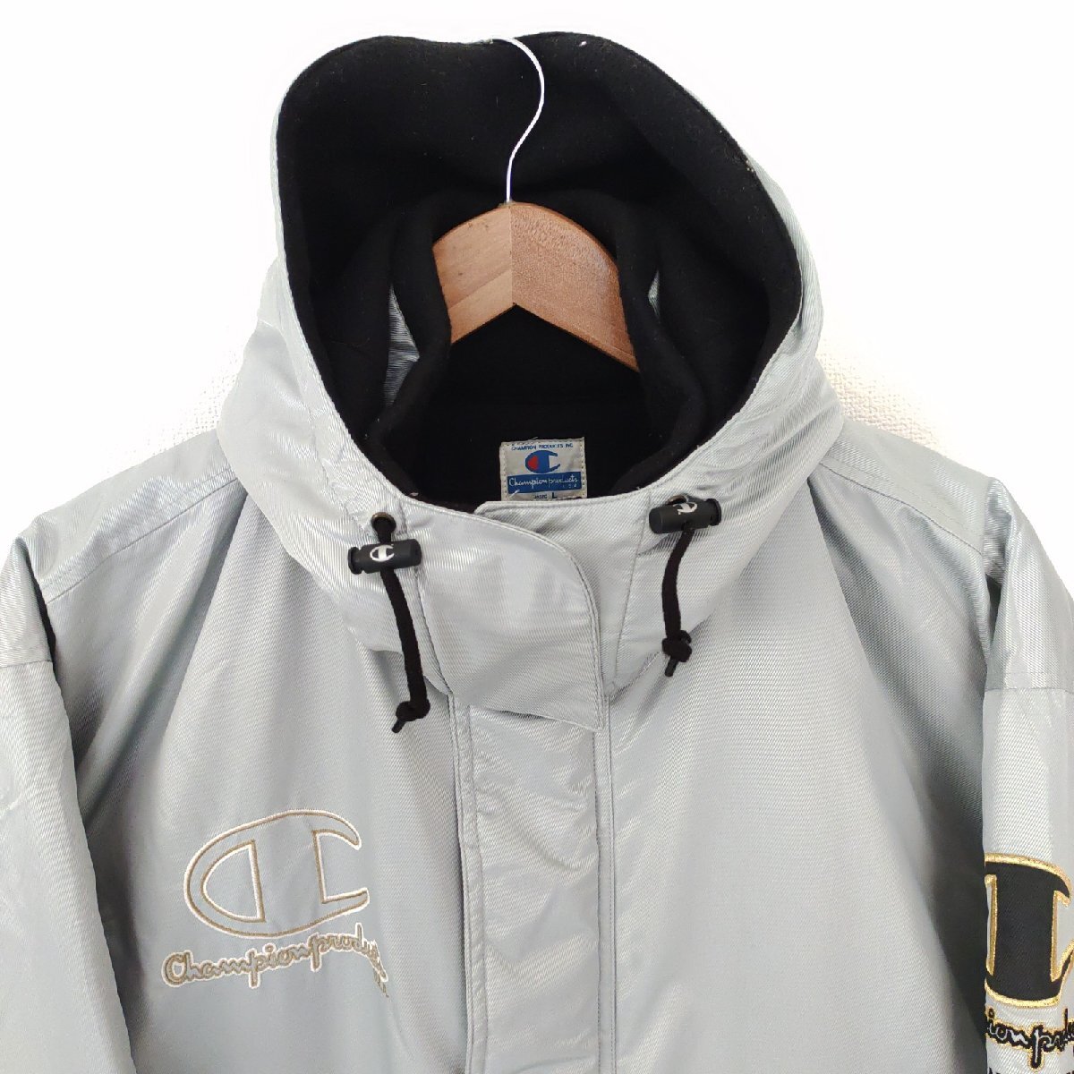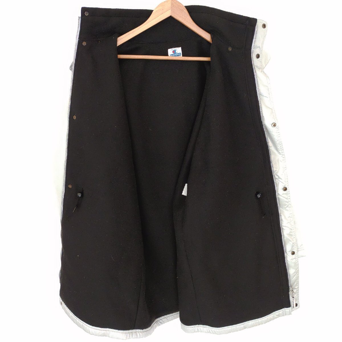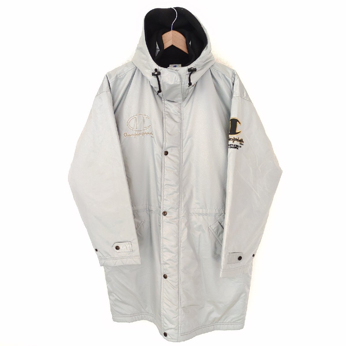 (^w^)b 日本製 champion チャンピオン 80s 90s ヴィンテージ 長袖 ベンチコート ロング ジャケット ジャンパー 防寒着 シルバー L O12530DD