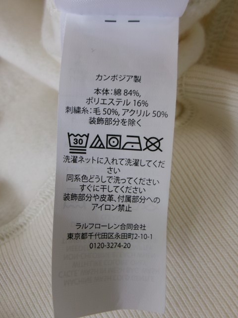 ![]() ■ブランド:Polo Ralph Lauren ■素材:【本体】綿84% ポリエステル16% 【刺繍糸】毛50% アクリル50% ■色:ホワイト ■表記サイズ:XXS ■実寸:身幅 47cm /着丈 54cm /袖丈 55cm /肩幅 46.5cm /裄丈 -cm ■状態:目立つダメージはございません。 [ご注意]モニターの発色具合によって、実際お色と異なる場合がございます。 素人の採寸となりますので、多少の誤差が生じる場合がございます。 ![]() ![]() ![]() 電話番号(082)-282-9990 サイズ、状態等ご不明な点はご連絡ください。 ![]() 是非ご来店下さい。 |
