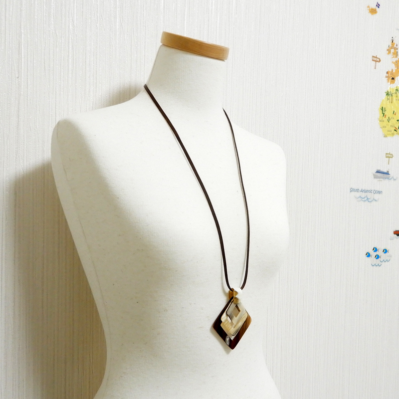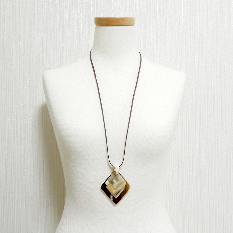 画像商品をお届け【新品】水牛の角 ペンダント ひしがた diamond shape(5)バッファローホーンアクセサリー クリックポストなら送料¥185