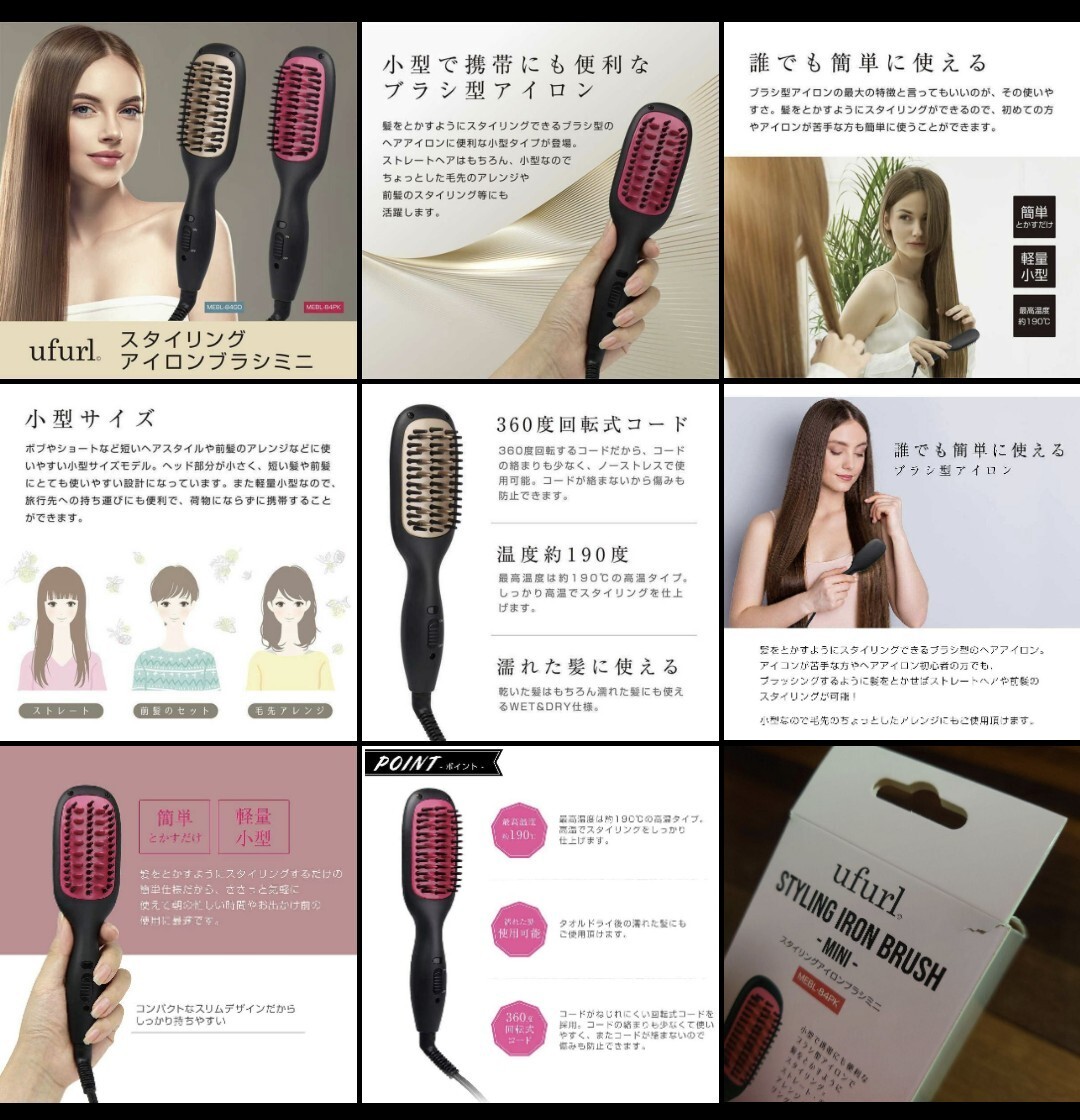 ・ufurl スタイリングアイロンブラシミニ MEBL-84PK