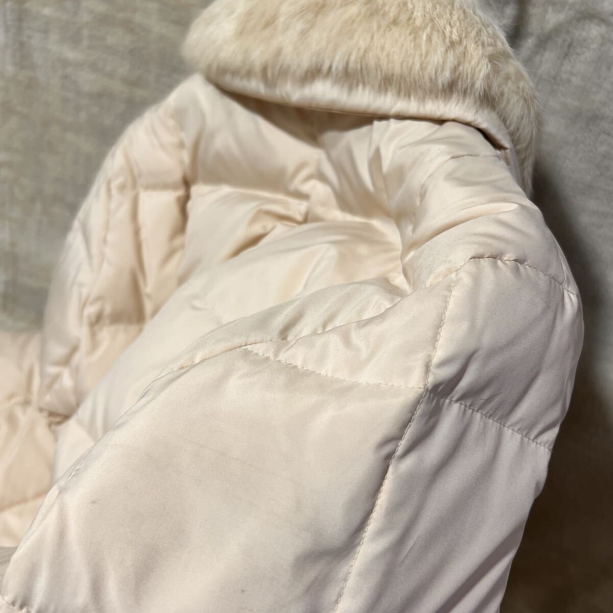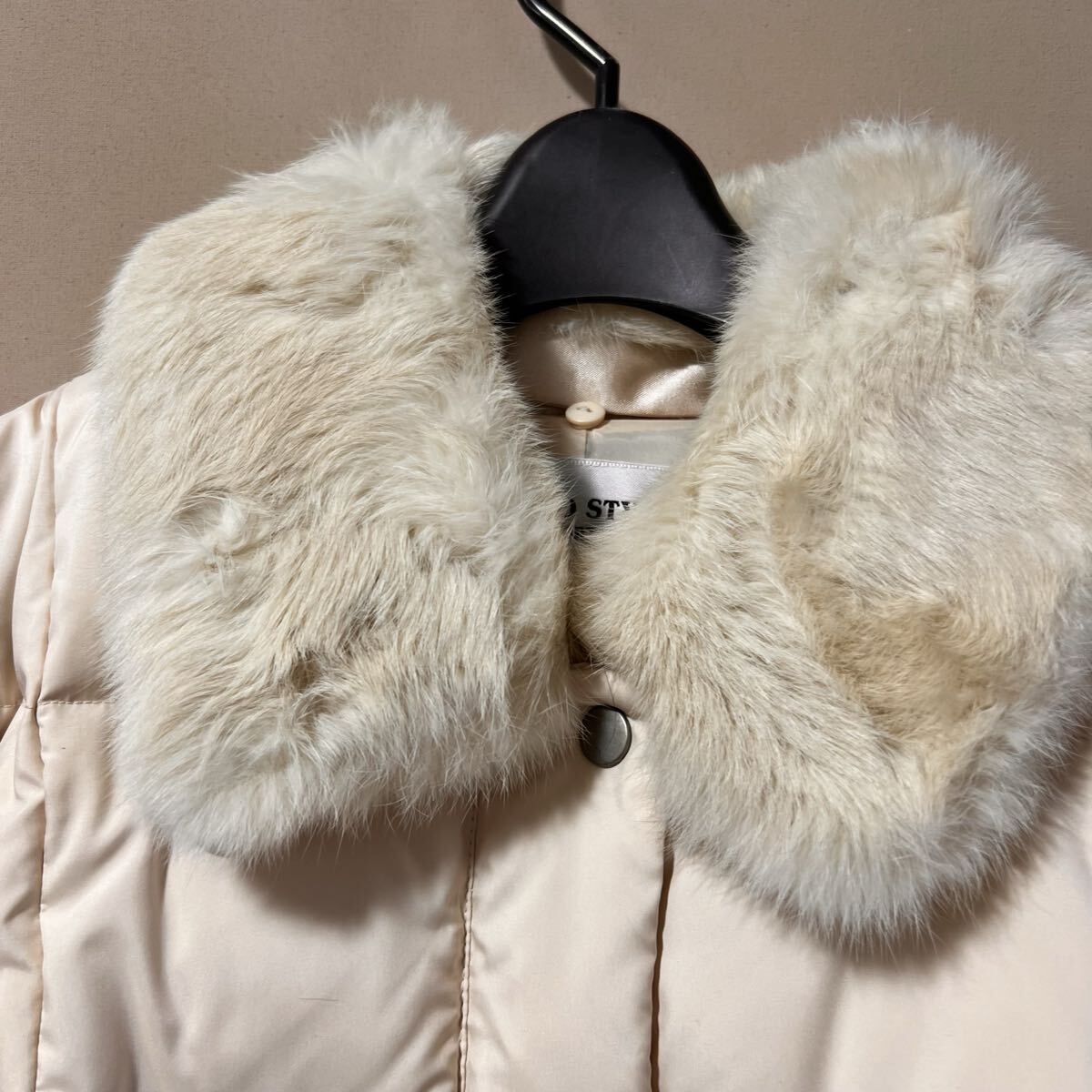 商品名:C2880 TOKYO STYLE SPORTS 東京スタイル ダウンコート ラビットファー付き アイボリー系 擦れ汚れあり ユーズド