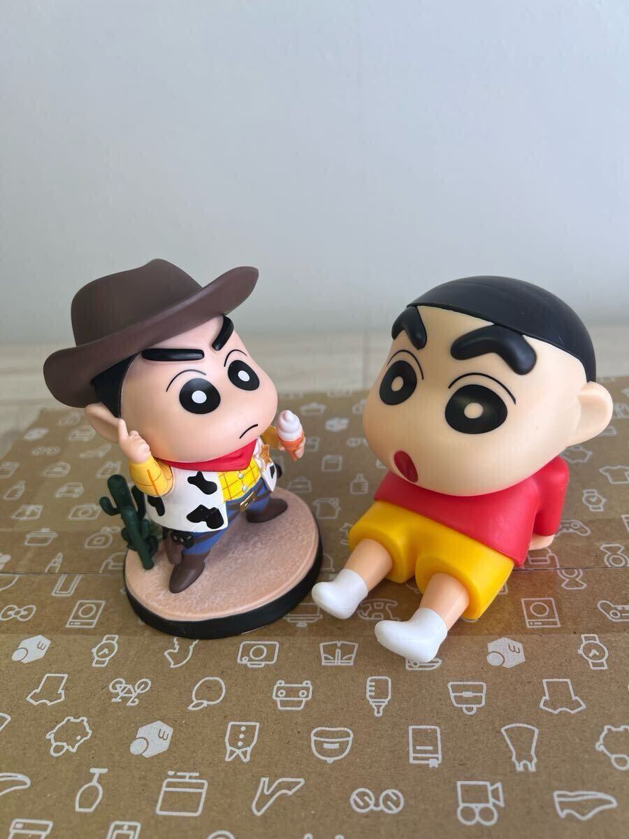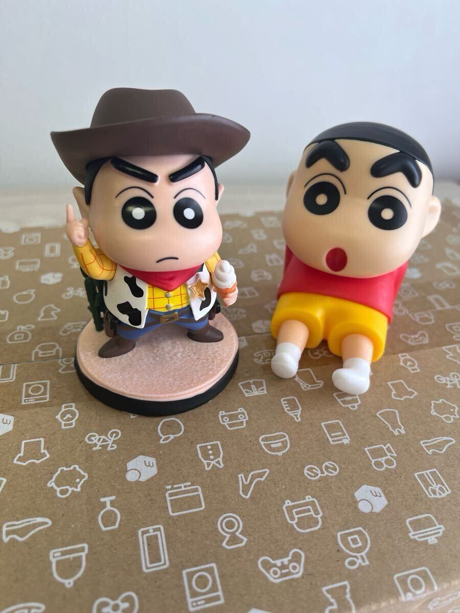 スマホスタンドのしんちゃんとカウボーイなしんちゃんのフィギュア2体セット。