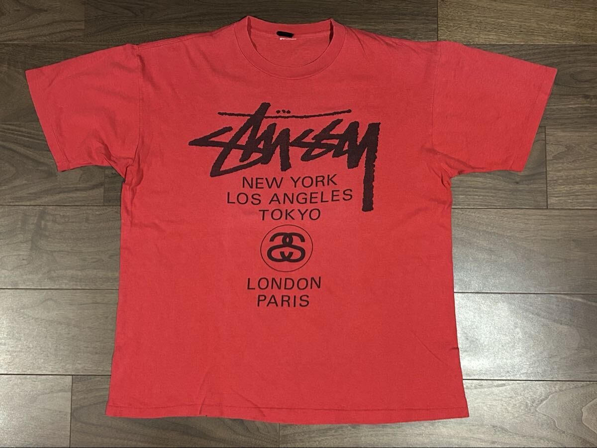 80年代の初期サテン黒タグがついたOLD STUSSY Tシャツです。ワールドツアーTとしては最初期あたりの物で今となっては中々出てこなくなっていますので柄&サイズと良いのでお好きな方へ。