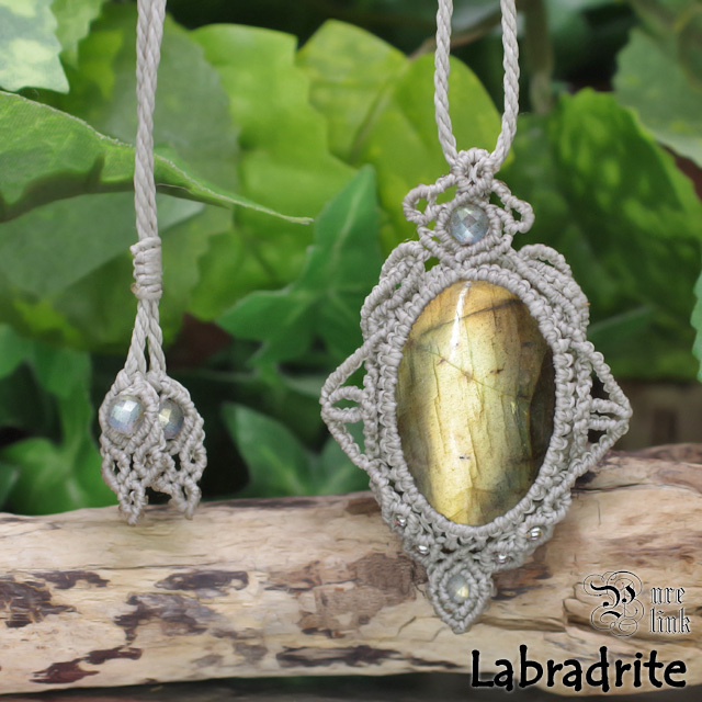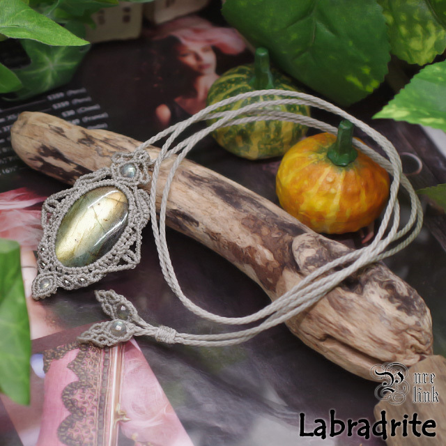そんな、幻想的な輝きを放つ『ラブラドライト』を使用し、より石達の力が発揮できるように願いを込め丁寧に編んで作成した、当ショップオリジナルのハンドメイドマクラメ編ネックレスです。(*^-^*)