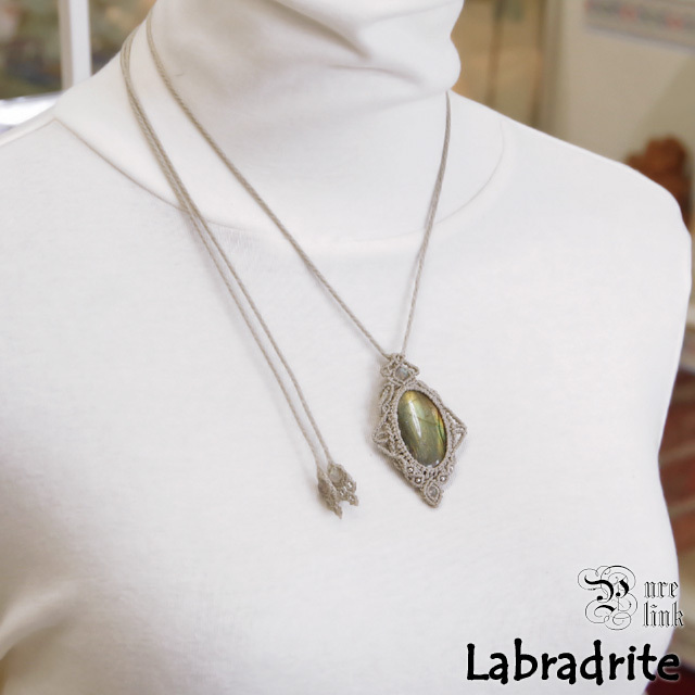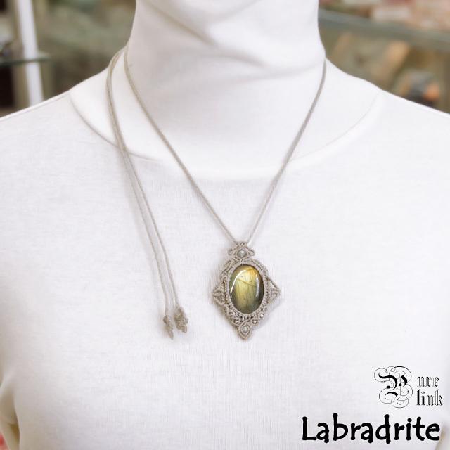 月と太陽を象徴する魔石『ラブラドライト』マクラメ編みトップネックレス5